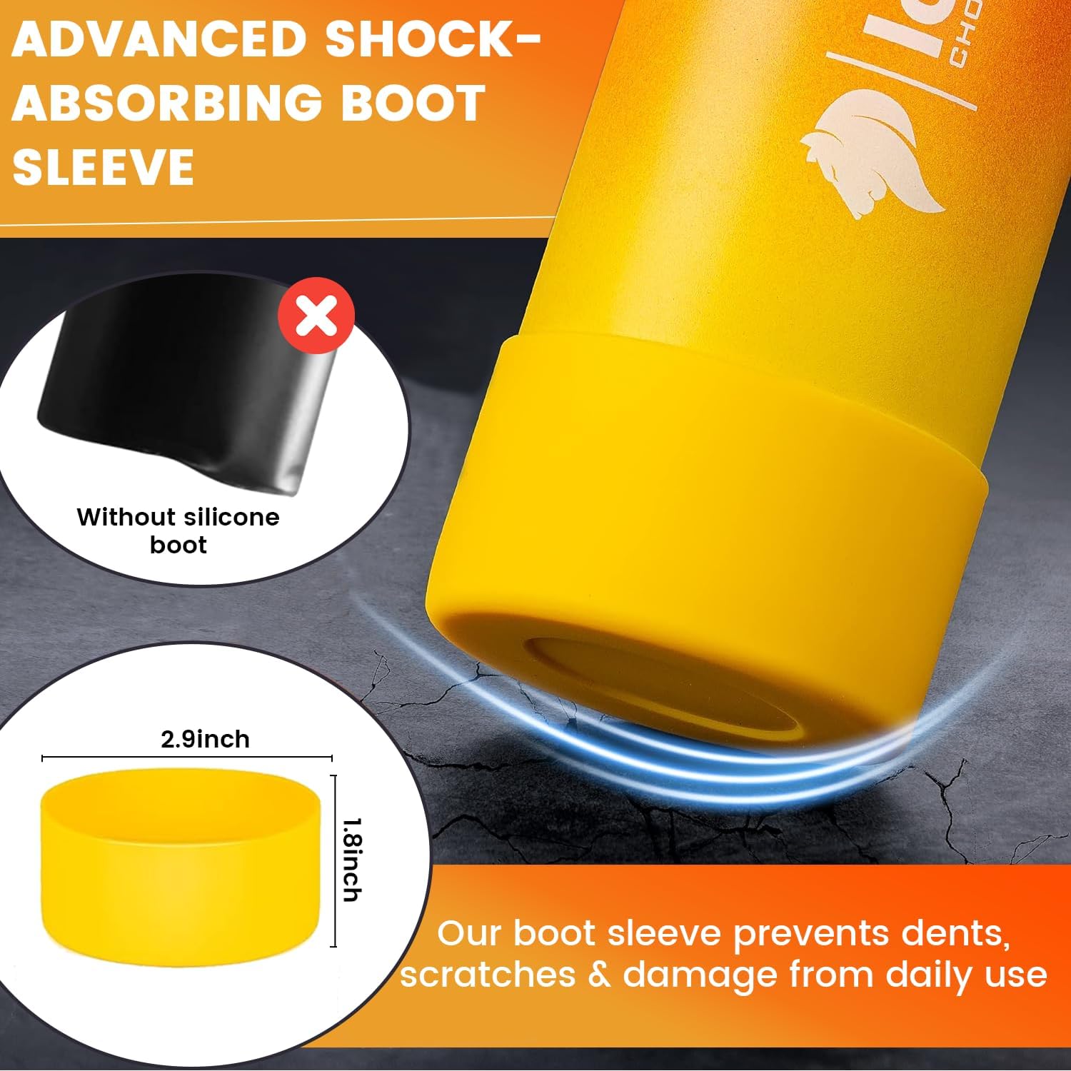- ✅ SILICON BOOT/SLEEVE- Lexlion 22 oz stainless steel water bottle comes with an advanced shock-absorbing silicone material that helps to protect against dents, dings, scratches, and all the imperfections of your 22 oz insulated water bottle. You are protected against an inevitable drop in your water infuser bottle. This will extend the life of your flask. The infuser water bottle is BPA-free and made of soft and highest-quality material.