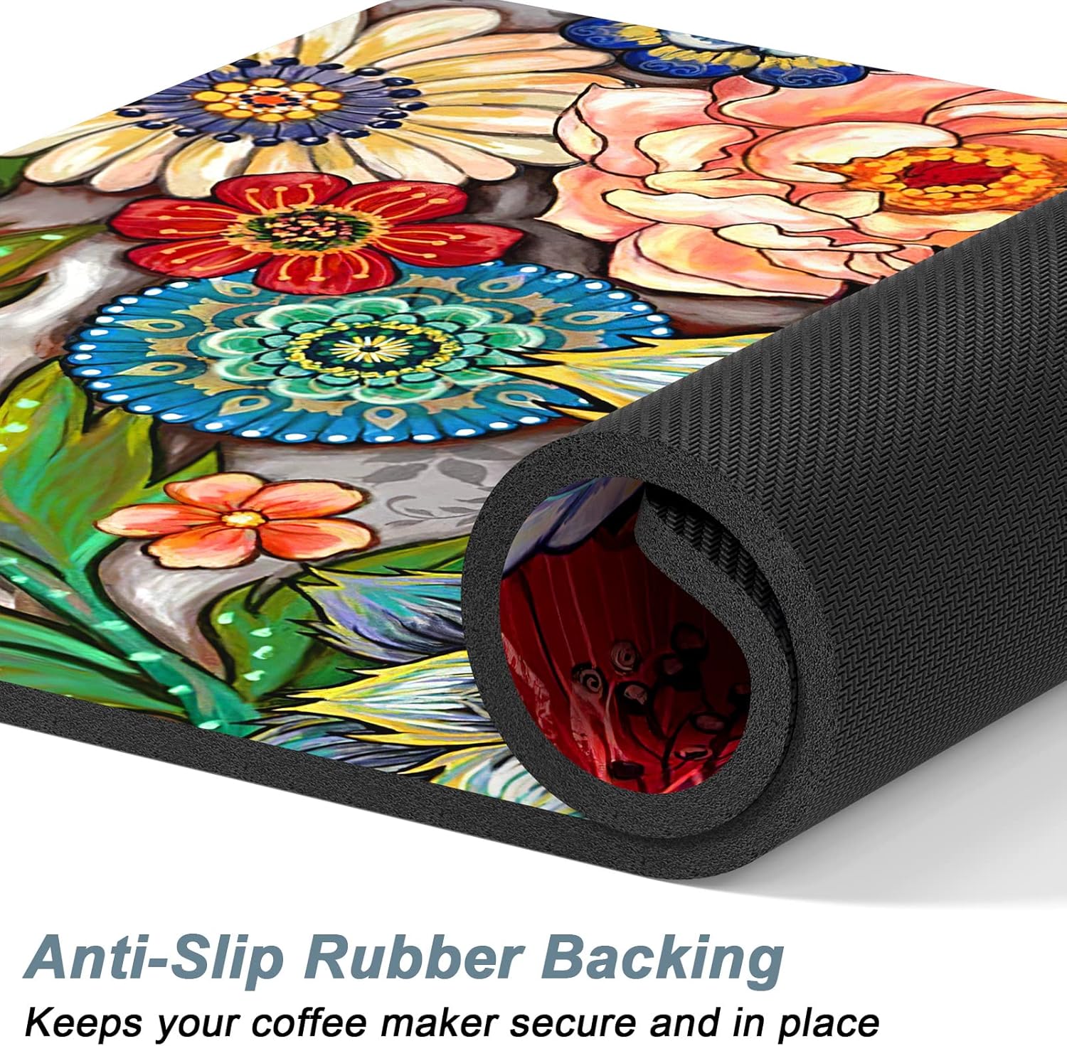 - Super Absorbent and Non-slip: Coffee bar decor mat is crafted from absorbent suede and anti-slip rubber. The surface is soft, heat-proofand and can quickly absorb liquid. The anti-slip rubber backing can firmly grip the floor without unwanted sliding