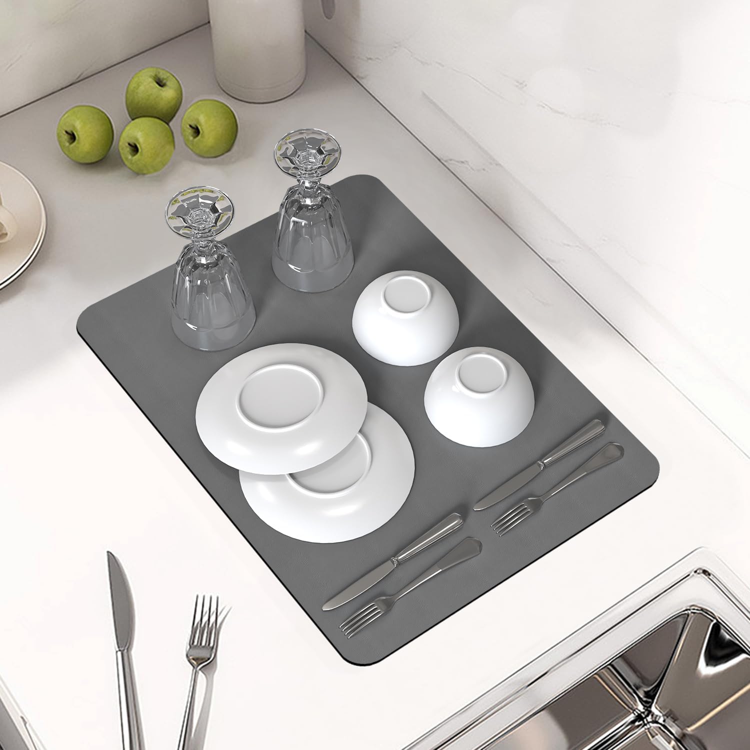 PoYang 17"x12" Coffee Mat Small, Coffee Bar Accessories for Countertop, Absorbent Dish Drying Mat, Anti-Slip and Hide Stain Pad for Espresso Machine, Espresso Maker and Kitchen Counter, Gray