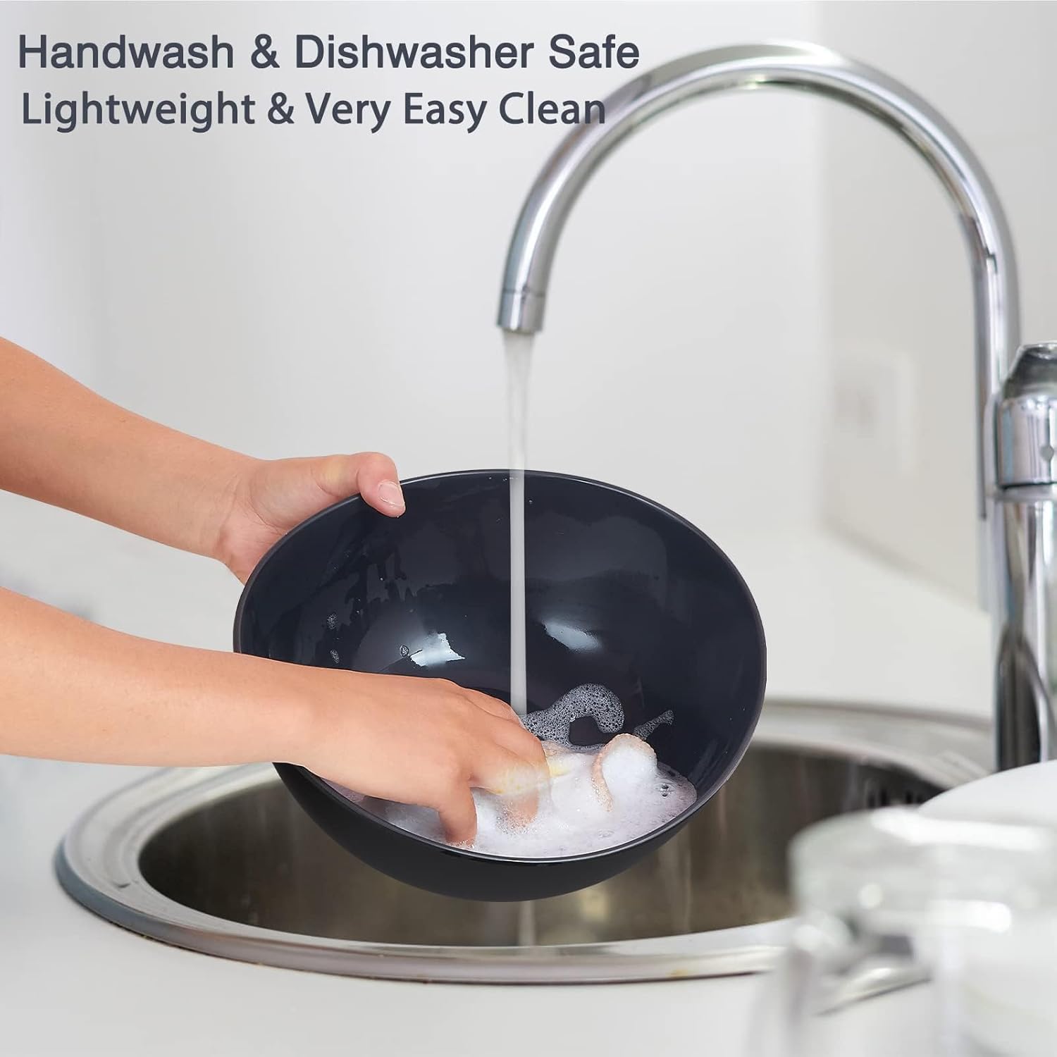 9.6'' Serving Bowls, 84oz Bamboo Fiber Salad Set of 4, Large for Kitchen, Deep Oval for Salad, Vegetable, Fruit, Pasta, Ramen, Lightweight & Easy to Clean (Matte Black)