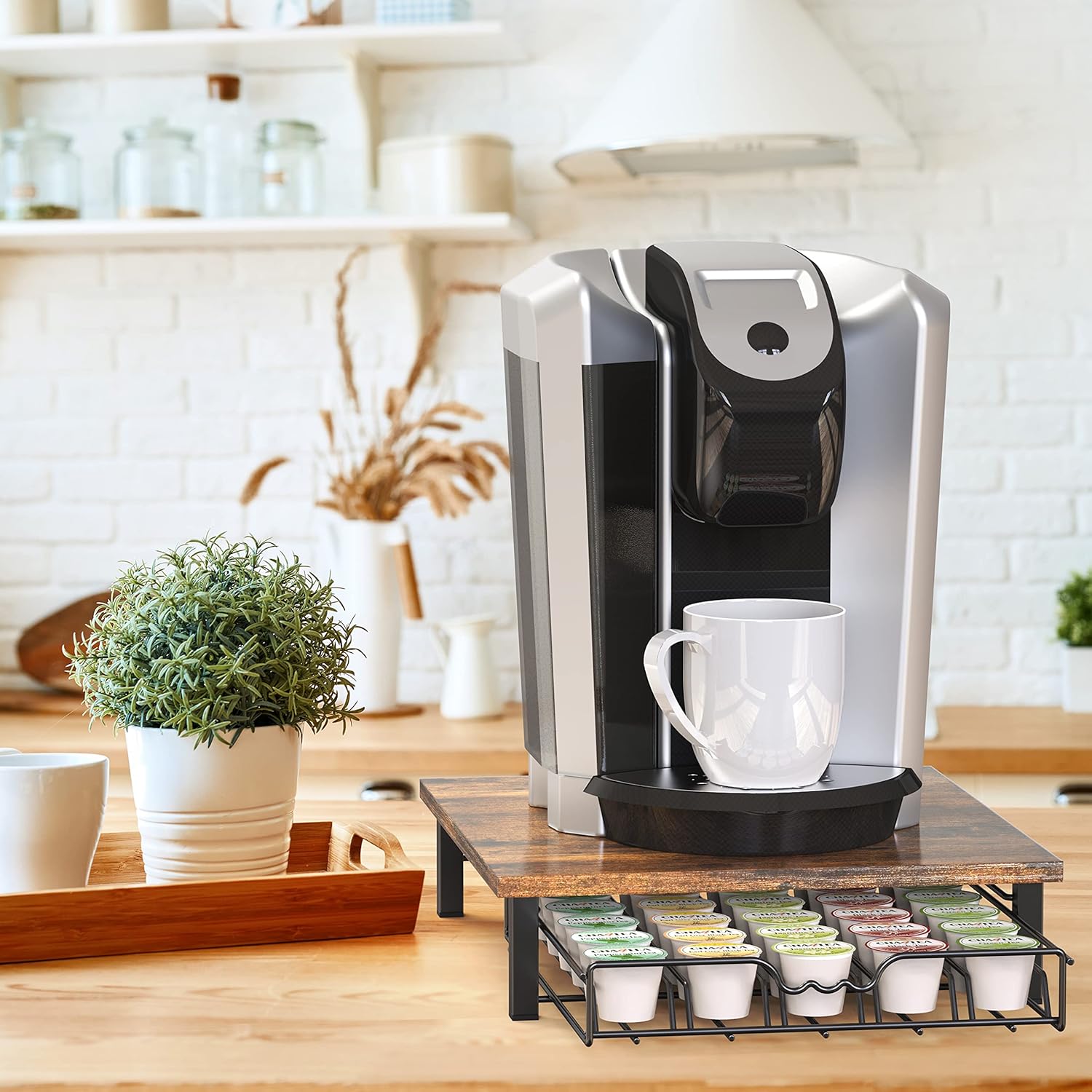 DecoBrothers K-Cup Holder Drawer for 30 Coffee Pods Storage, Rustic Brown