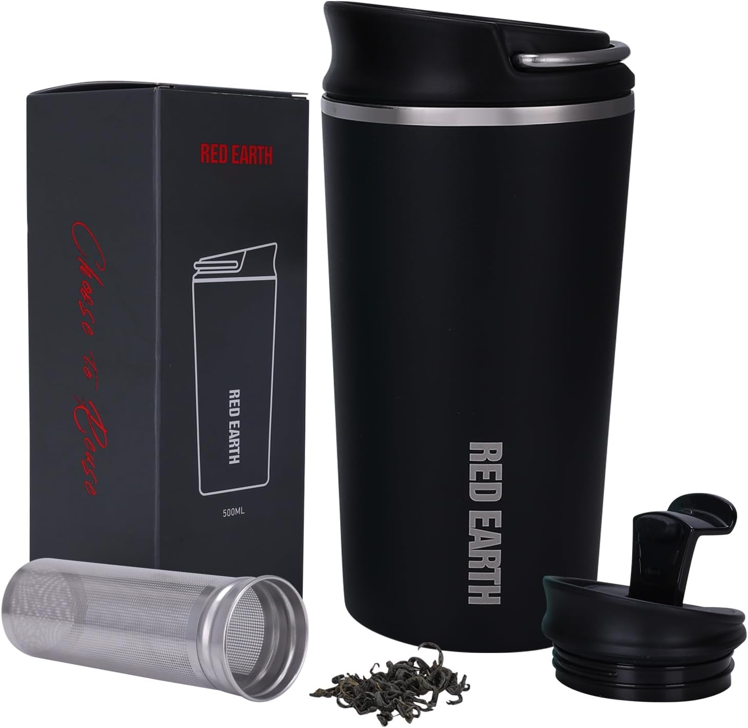 GiNT 17oz Travel Mug with Infuser and Two Lids. Vacuum Insulated 316 Stainless Steel Coffee Mug. Dishwasher Safe Mug with Tea Strainer for Hot and Cold Brew Coffee or Tea(Black)