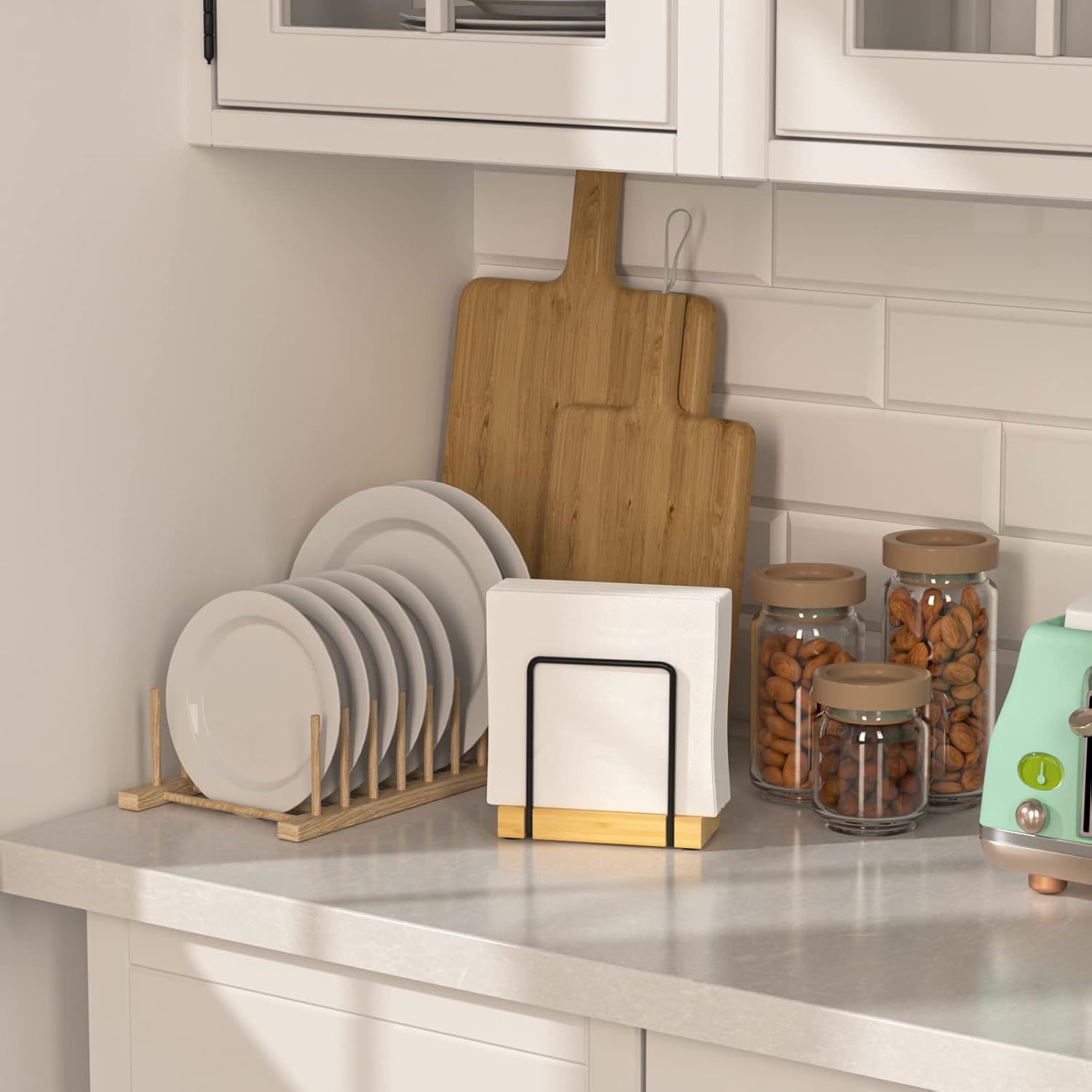 Napkin Holder for Table, Bamboo Iron Standing Napkin Dispenser for Kitchen Dining Table Farmhouse Cocktail Picnic Rustic Wood Holders for Mail Bills Suitable for All Dining Room Decors Black & Yellow