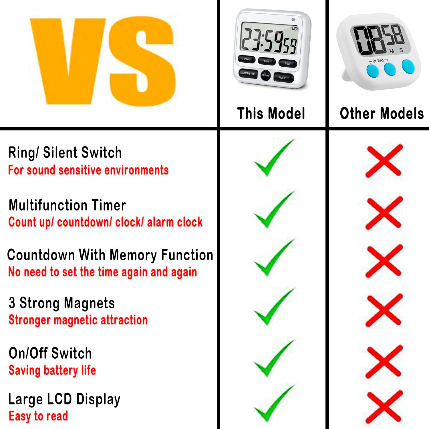 - Silent Mode & Ring Mode: Available for More Situations, We all dread the situation where our timer rings in the middle of a meeting, class or sound sensitive environments, mute & flash mode is the solution to that problem