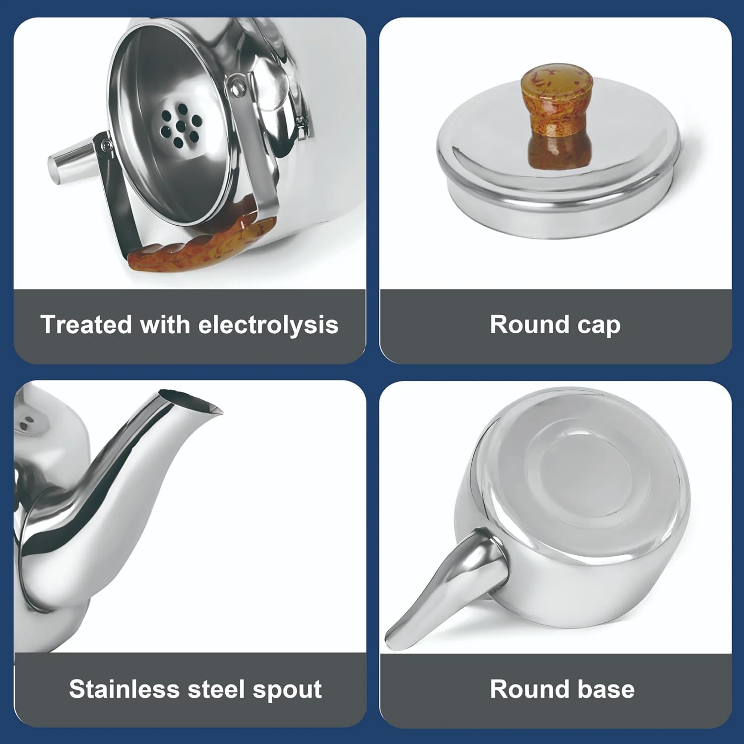 - Durable Stainless Steel Build: This tea pot is made from strong stainless steel that won't rust, and it's shiny and easy to clean inside and out this tea kettle is really tough, with a thickness of 0.4mm, so it's hard to dent. This kettle pot is made from stainless steel 201, which is really strong. The handle of our camping kettle designed to make pouring easy! The burner tea pot has a handle that's easy to hold and won't get hot, so you won't burn yourself.