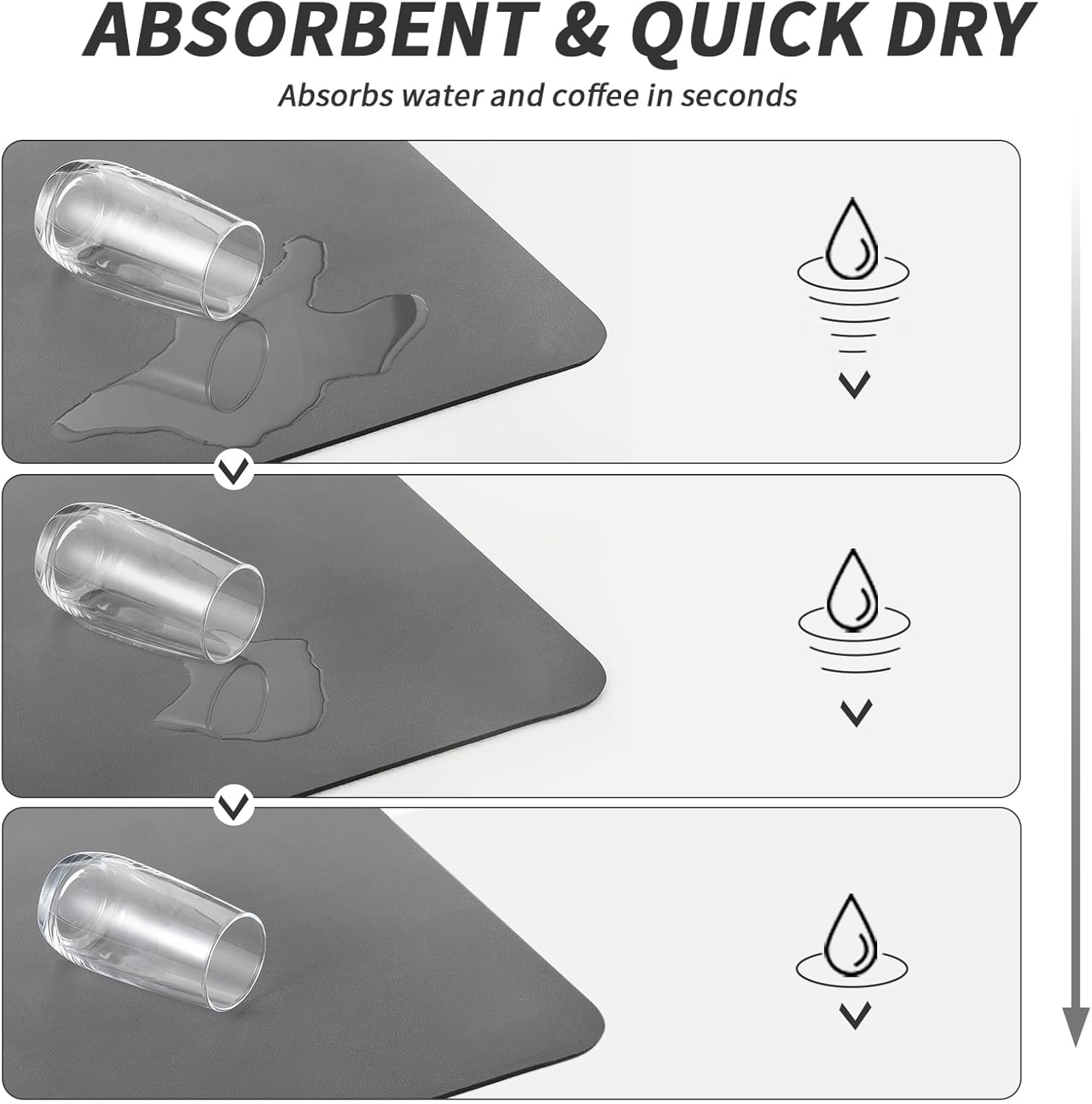 - ☕【Wide range of uses】 It is not just a coffee bar mat, but also a high water absorption and quick dry pad that can be widely used as a drying mat for kitchen countertop, cups, water dispensers, mixers, ice cream machines, dish washing racks, dinner plates, tableware, etc., or as a food pad for pets.
