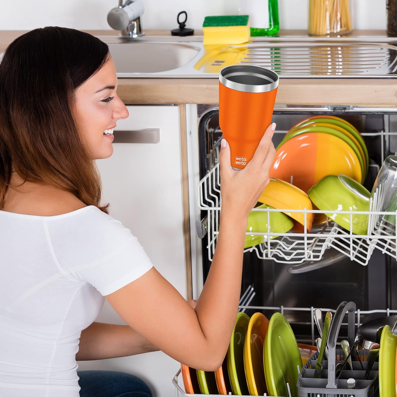 WETOWETO 30 oz Tumbler Stainless Steel Vacuum Insulated Coffee Ice Cup Double Wall Vacuum Coffee Cup Thermal Cups for Hot and Cold drinks, Suitable for Beach, Travel (Orange, 1 Pack)