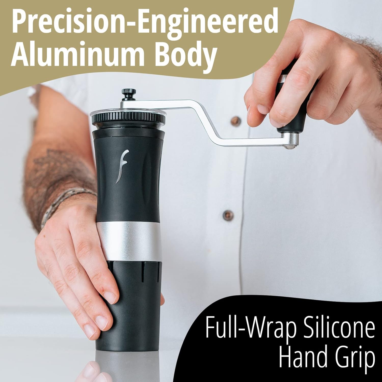 The Royal Coffee Grinder, by Flair Espresso: An all-manual hand burr grinder with hardened steel conical burrs for any coffee brewing method