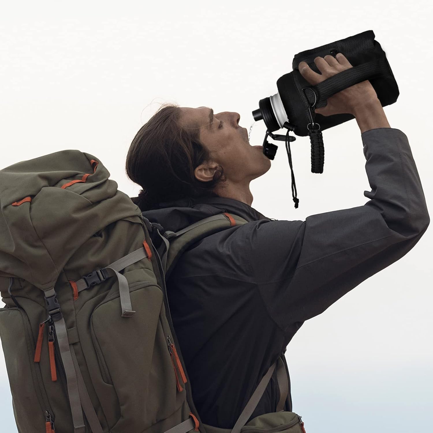 - 【Portable Water Bottle Holder】 – To make carrying easier, this water bottle comes with a handmade paracord handle and adjustable shoulder strap for hands-free convenience. The holder includes a zippered storage pocket for small items like keys, cards, or snacks, and a side hook for accessories. Whether you’re going on long hikes, outdoor adventures, or traveling, this bottle + carrier set offers both functionality and style