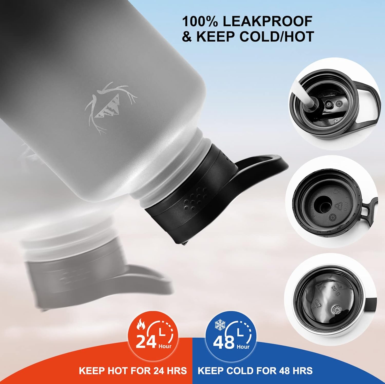 - 【Triple-Layer Vacuum Insulation】 – This insulated water bottle is engineered with triple-wall, vacuum-sealed insulation and made from premium 18/8 food-grade stainless steel. This advanced design locks in temperature, keeping drinks ice-cold for up to 48 hours or steaming hot for up to 24 hours. The no-sweat exterior prevents condensation and protects your hands from heat or frost, making it reliable for outdoor sports, travel, camping, and daily hydration