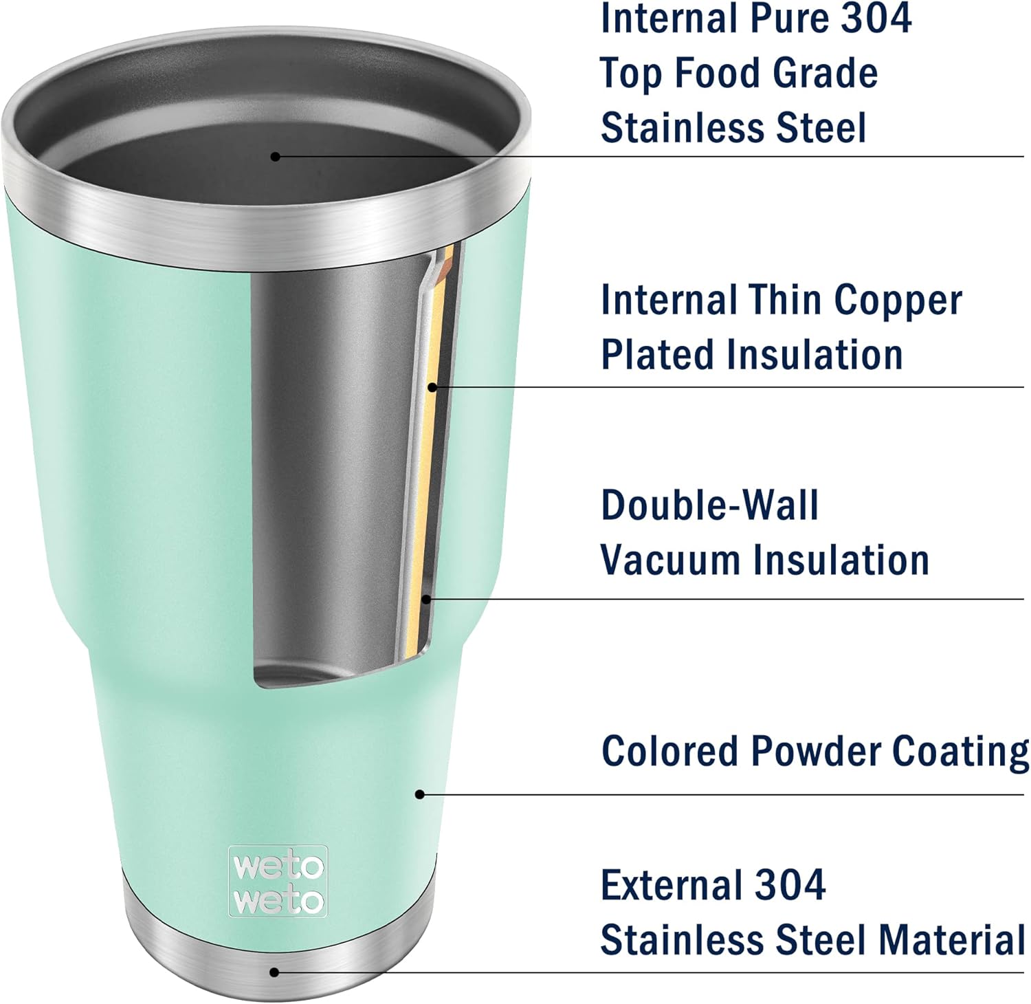 WETOWETO 30oz Tumbler, Stainless Steel Vacuum Insulated Water Coffee Tumbler Cup, Double Wall Powder Coated Spill-Proof Travel Mug Thermal Cup for Home Outdoor (Light Green, 1 Pack)
