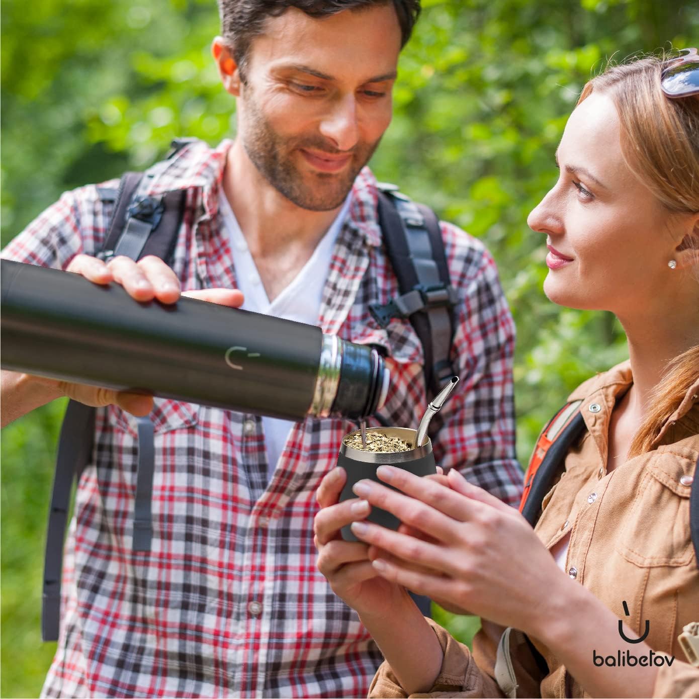 BALIBETOV Complete Yerba Mate Set - Modern Mate Gourd, Thermal Flask, Bombilla and Cleaning Brush Included - All Premium Quality 304 18/8 Stainless Steel (Full Black)