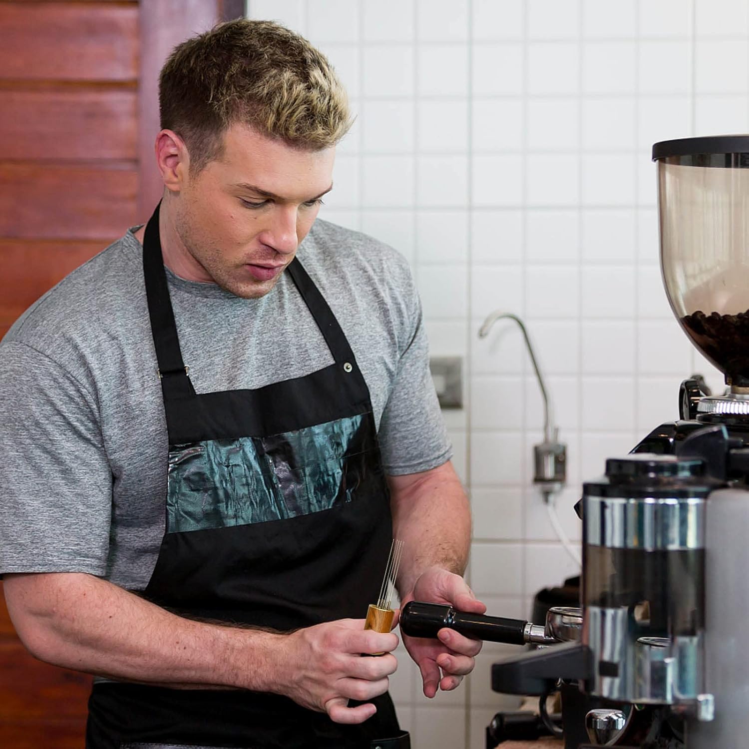 - 【Premium Material】The 5 needles of this portable espresso distribution tool are made of food-safe stainless steel with high elasticity and durability; the handle is made of high-quality solid wood material with a polished surface, exquisite and practical, ergonomically shaped design, comfortable to hold, which can bring you a comfortable experience.