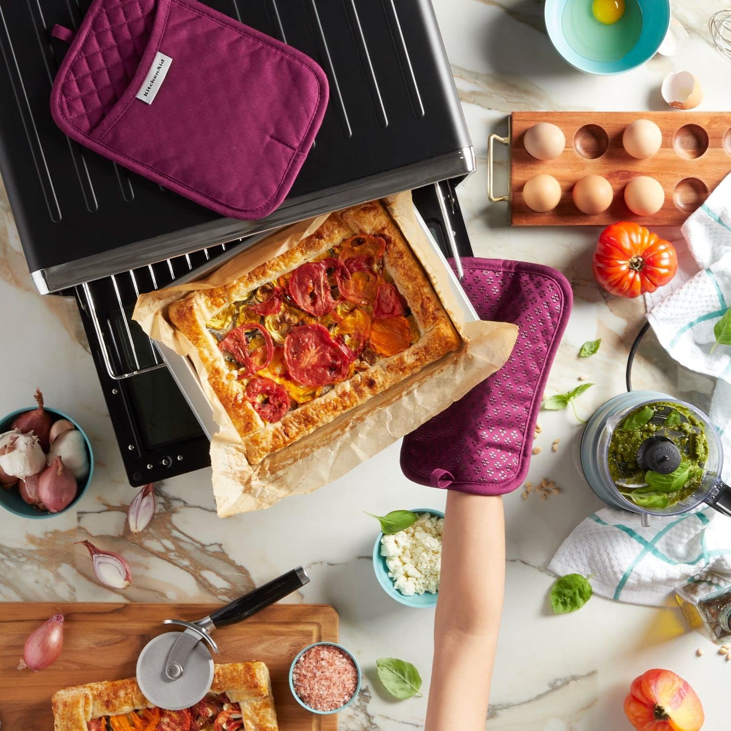 KitchenAid Asteroid Pot Holder 2-Pack Set, Beet, 7"x10"