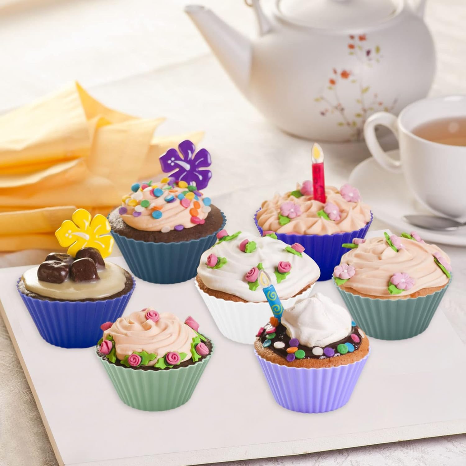 - PACKAGE INCLUDES: You'll get 48 pack silicone cups in 8 beautiful colors, six of each color, enough cupcake liners can be made together by friends and classmates or given to them as gifts.