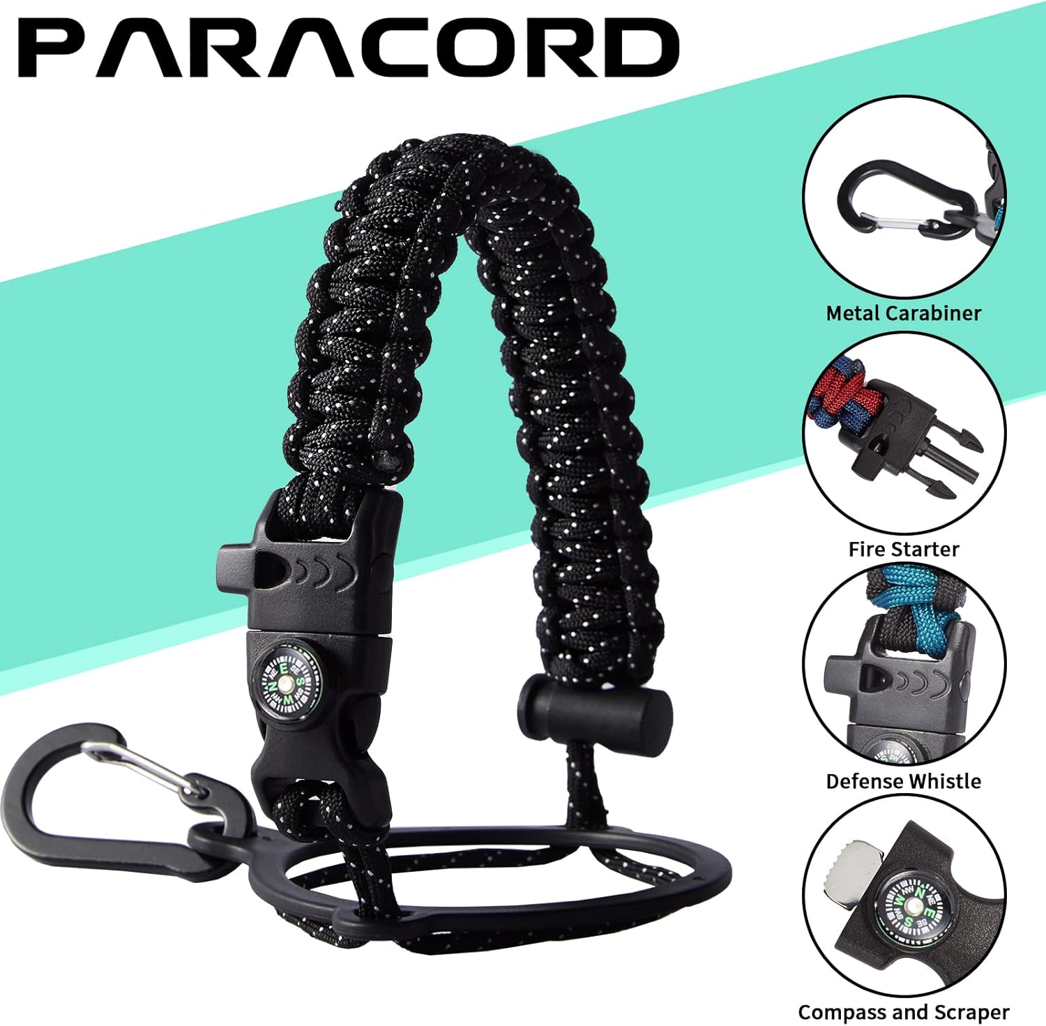 - UNIQUE PARACORD—Perfect Accessories: bright color paracord matches the flask water bottle to give you a youthful vibe while adding a personal style. It comes with a compass, safety loop, metal carabiner, flint, igniter, and whistle to become your survival tool for your wild adventures