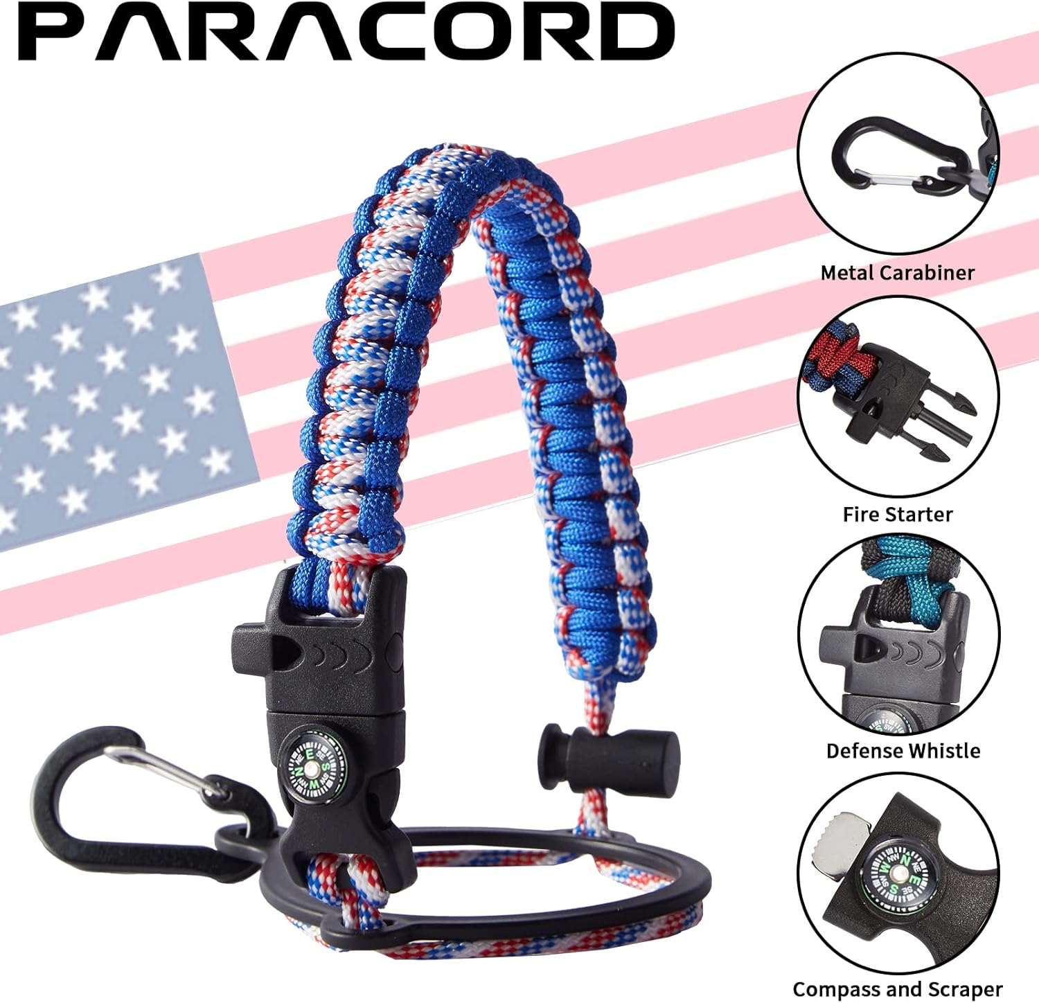 - UNIQUE PARACORD—Perfect Accessories: bright color paracord matches the flask water bottle to give you a youthful vibe while adding a personal style. It comes with a compass, safety loop, metal carabiner, flint, igniter, and whistle to become your survival tool for your wild adventures