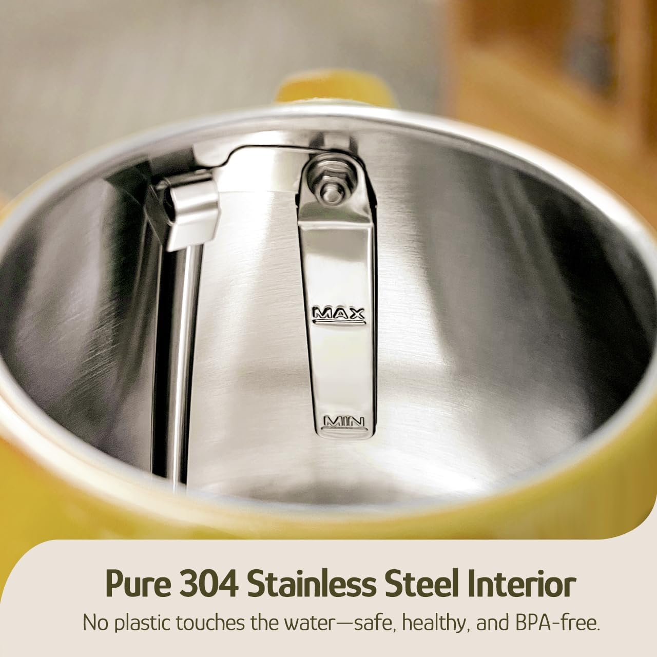 - All Stainless Steel Interior, BPA-Free - Crafted with 100% food-grade 304 stainless steel, this stainless steel kettle ensures no plastic touches your water, offering a healthier and safer drinking experience for your family.