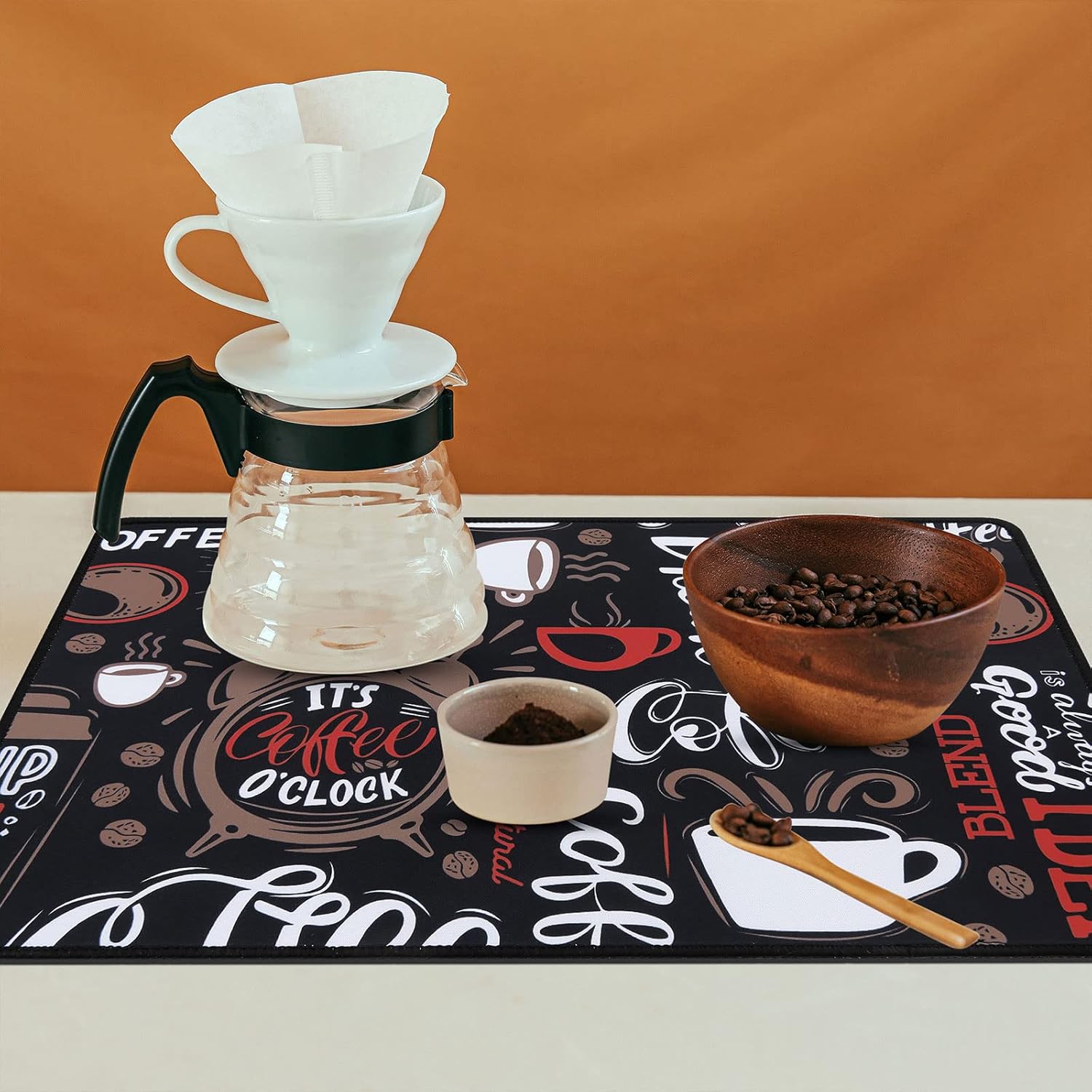 - Easy to clean: The coffee bar mats for countertop has no need to clean frequently. They can be cleaned with soap to remove stains, and then dried and reused. But do not bleach