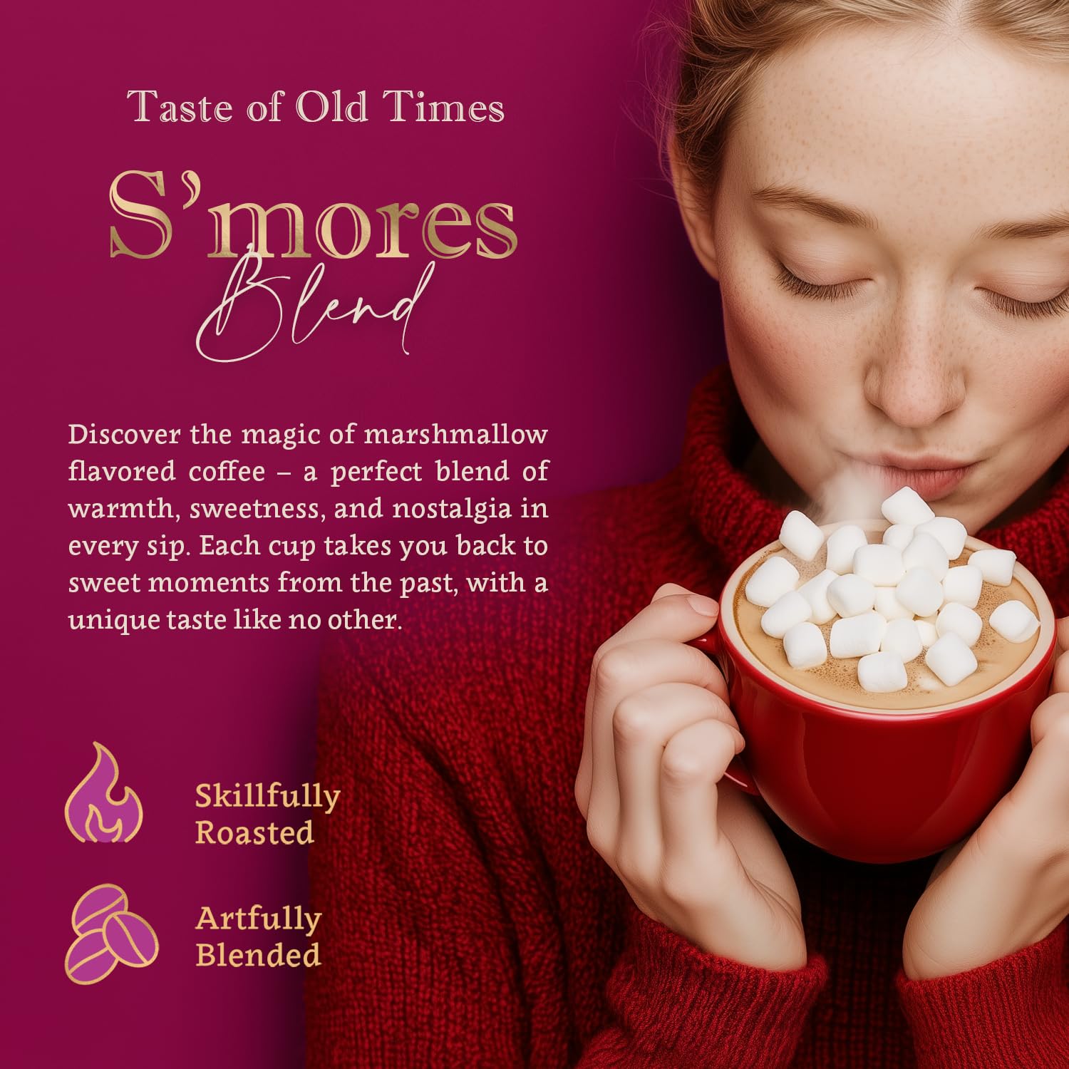 - S'mores Flavored Whole Bean Coffee – Experience the rich, creamy flavors of toasted marshmallow, milk chocolate, and graham cracker in every cup.