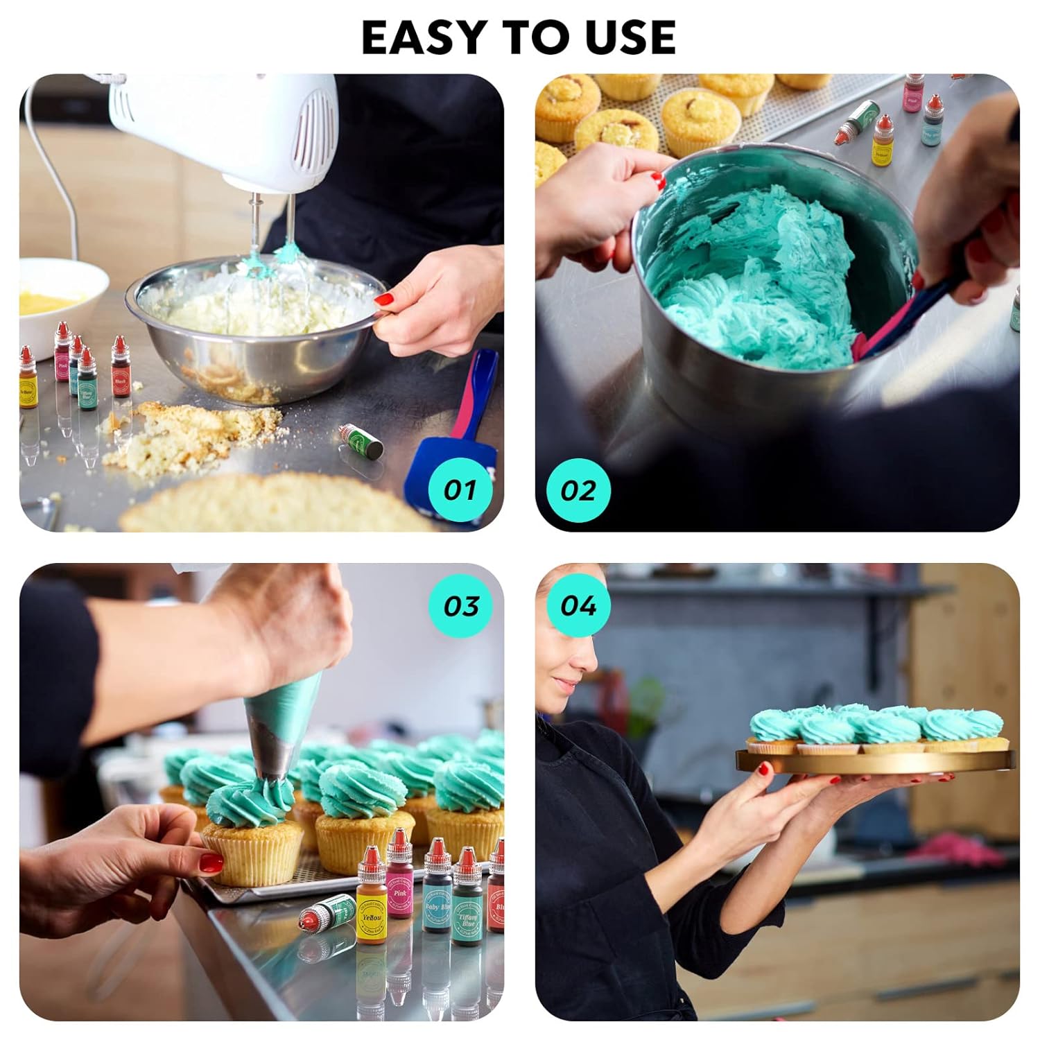 - High Concentration and Easy to Apply Color - We have upgraded the texture of the color to be thinner than a gel but thicker than a liquid, with a more intense color than before. This will allow you to blend in better with your food. We've also upgraded the squeezable bottle to make it easier not only to apply the color but also to control the amount. For better results, please shake well before use
