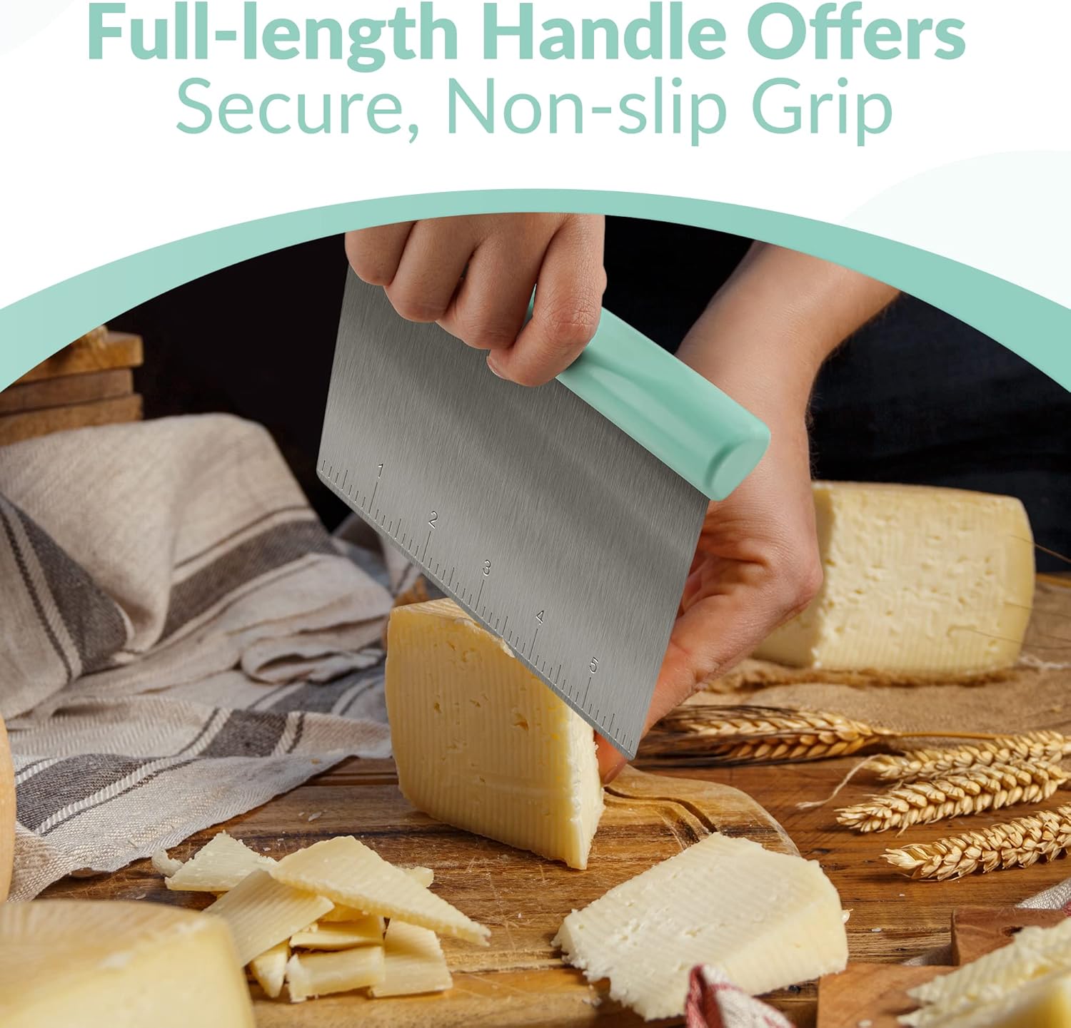 Rainspire Bench Scraper, Stainless Steel Dough Scraper, Pastry Scraper, Pizza and Dough Cutter Multi-Purpose Scraper/Chopper, Pizza Cutter Food Chopper Baking Supplies Kitchen Gadgets, Mint Green
