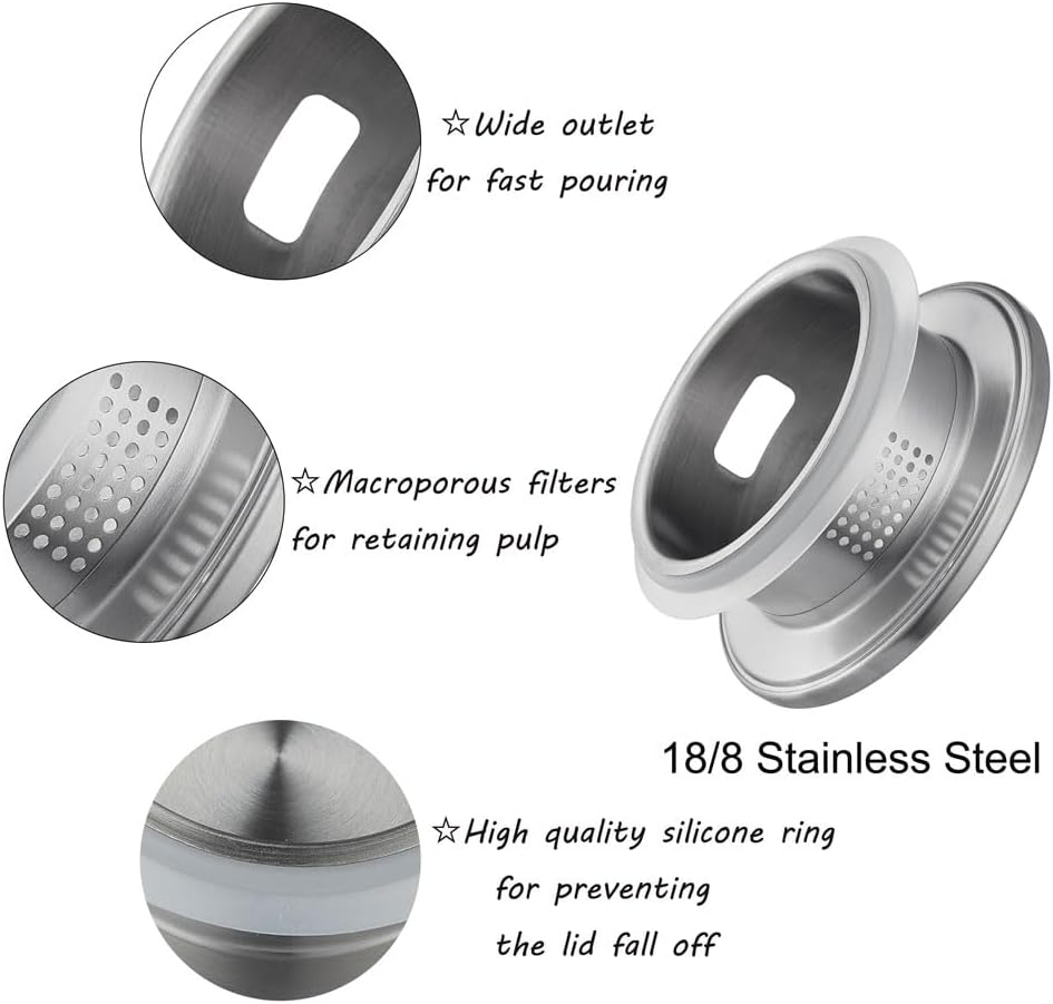 - [Upgraded Stainless Steel Lid]This glass jug has a stainless steel lid, which with two ports, the small one is for tea and avoid seeds out, the big one is for juice or water.The lid has been upgraded twice with premium 18/8 stainless steel, making it stronger, heavier and easier to pour water