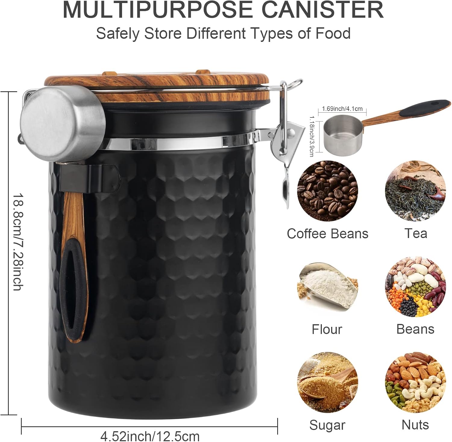 - 【Super Capacity】: The container can hold up to 1.8L(61Fl Oz) of water, 22oz/645g Coffee beans, or 18oz/554g coffee powder. The airtight seal allows coffee to be stored for an extended amount of time.