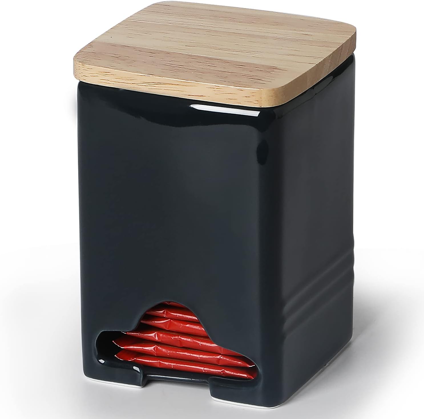 Ceramic Tea Bag Storage Organizer Caddy Holder with Lid (Navy)