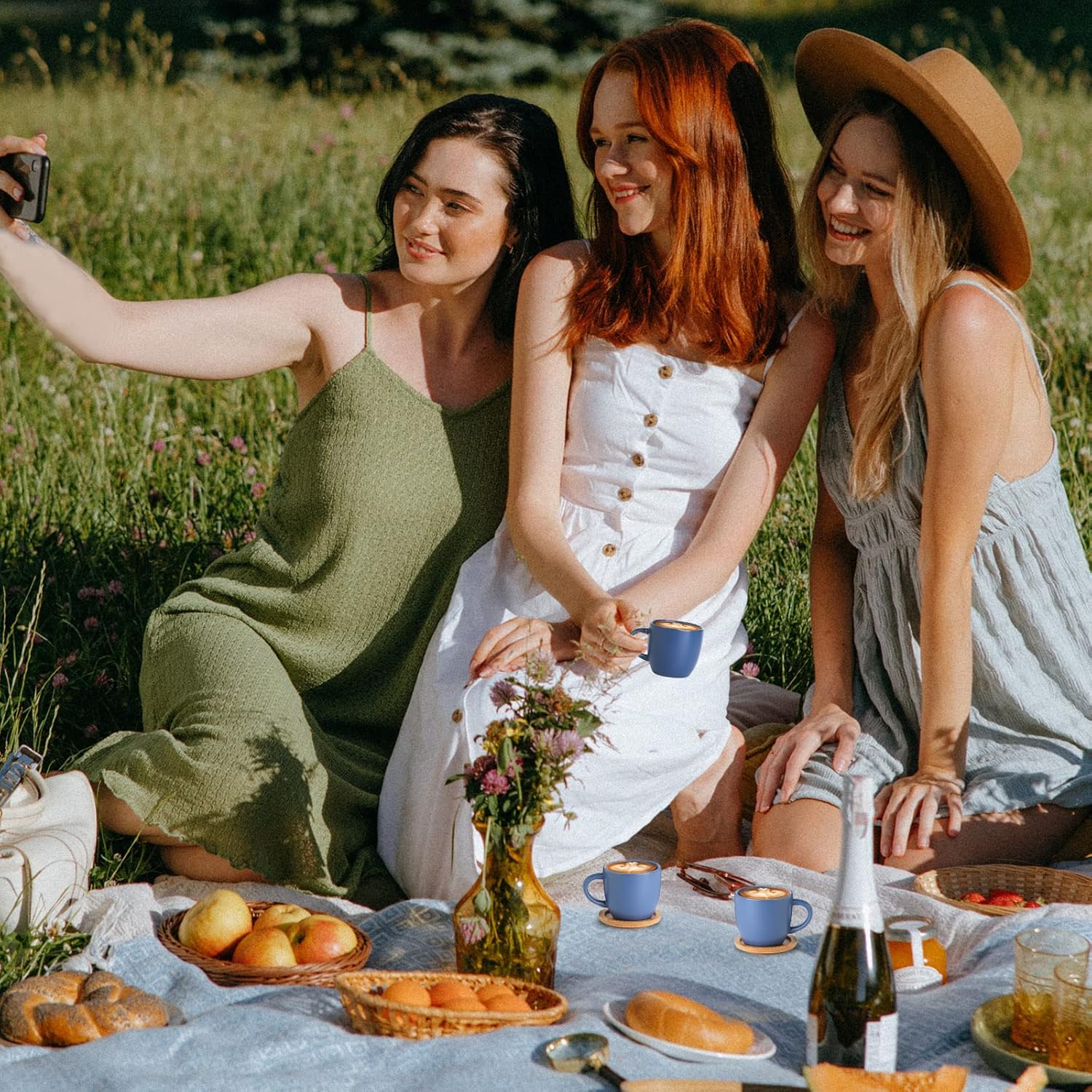 - CHIC AND SLEEK DESIGN: Matte glaze surface and comfortable handle make up a elegant mugs set. What's more pleasing than a sip of espresso in the morning? There is no doubt that caffeine can be a refreshing. The stylish and modern blue coffee cups can impress your guests.
