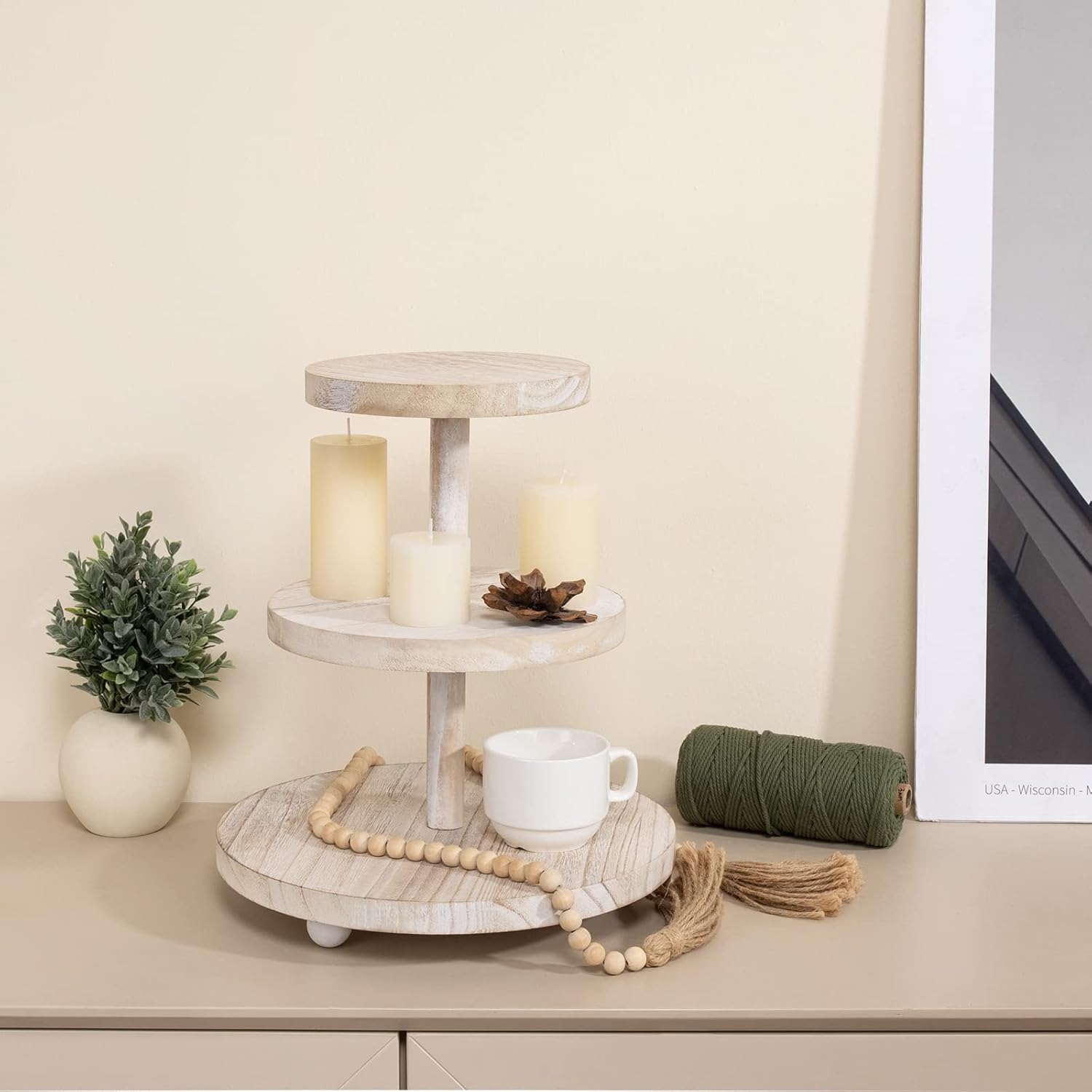 - Exquisite Small Round Legs Design : Exquisite Workmanship, each wooden cake stands with 3 rounded legs Each shelf has been carefully crafted to ensure stable placement on the tabletop,It’s reliable and safe to use bringing your cake,cupcake ,candle or crafts a delicate appearance