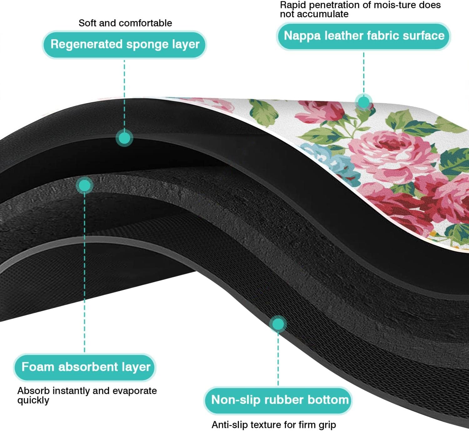 Rubber Dish Drying Mat for Kitchen Counter Large Pink Red Roses Floral Washable Quick Home Coffee Pad Fit Under Sink,Bar,Utensils 18x24in