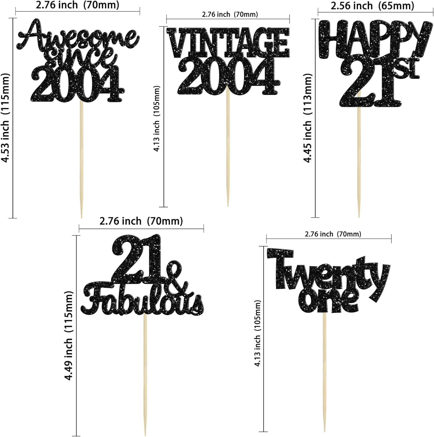 - ♡These glitter 21st birthday Cupcake Toppers are so cute and good for vintage 2004 theme party, 21st birthday party, 21st wedding anniversary birthday party cake decoration. They can make your cupcake more attractive and bring the fun to your party. You can also apply them for ice cream, fruits, cookies and other desserts.