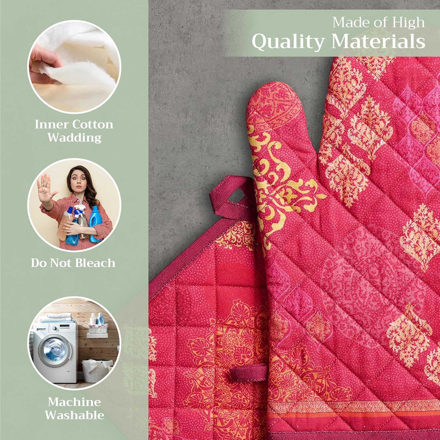 - Premium Quality: Crafted from quilted 100% cotton, this heat resistant oven mitt and pot holder set offers comfort, flexibility, and protection from hot cookware. Ideal cotton oven mitts for daily kitchen use and cooking safety
