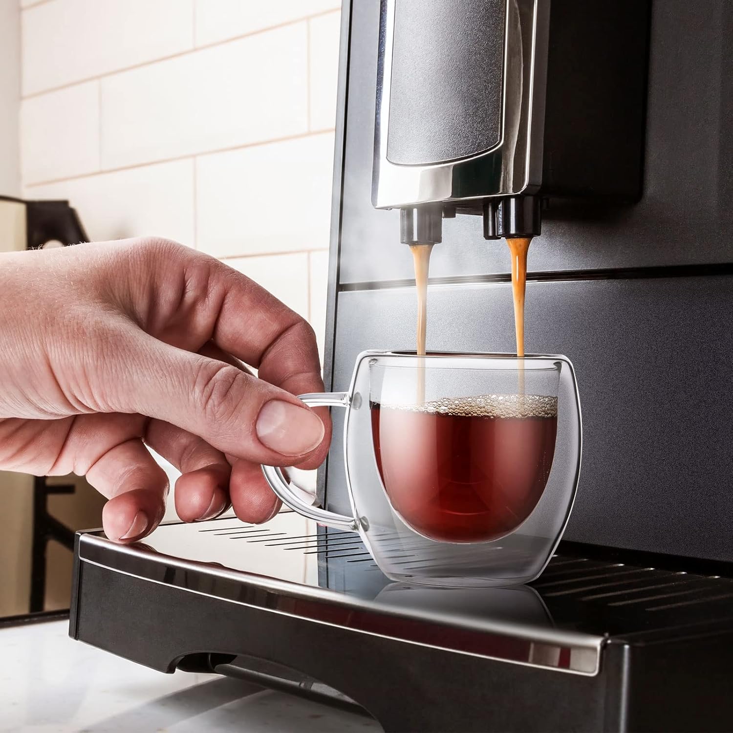 Gerrii Espresso Cups Double Walled Espresso Shot Glass with Handle Cups Insulated Clear Small Shot Glasses for Cappuccino Latte Hot Beverage(15 Pcs,2.5 oz)
