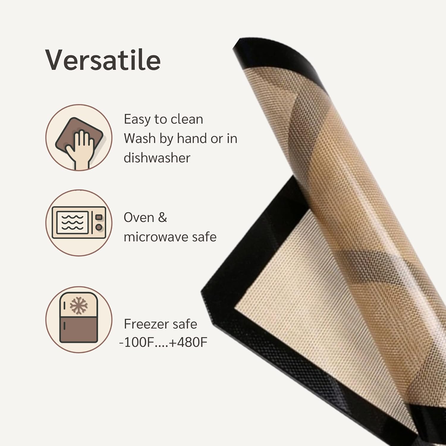 - 💯 Healthy Cooking Alternative: Eliminate the need for parchment paper or cooking sprays with these silicone baking mats that promote healthier cooking practices. Outstanding non-stick properties ensure that your food will release without grease, sprays, or parchment paper sheets.