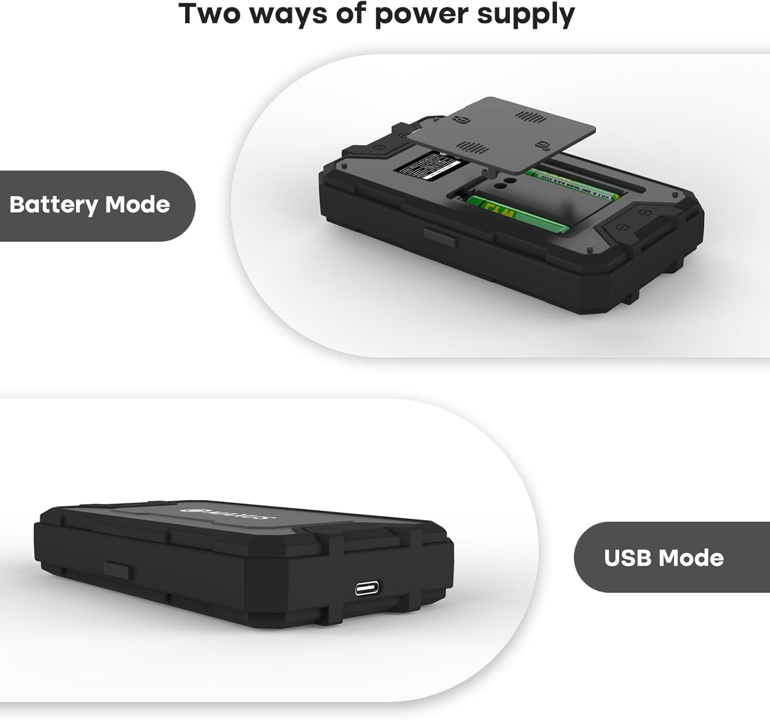 - Dual Power Options: Operates with batteries or USB cable
