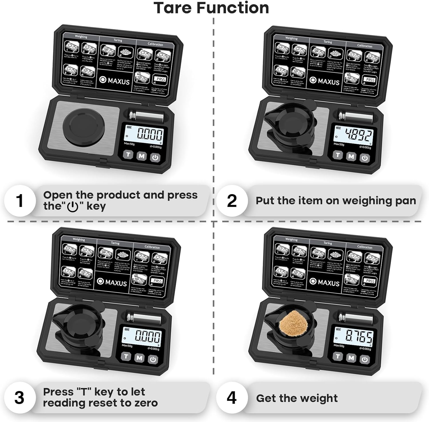 - Precision Capacity: Weigh up to 50g with 0.001g accuracy