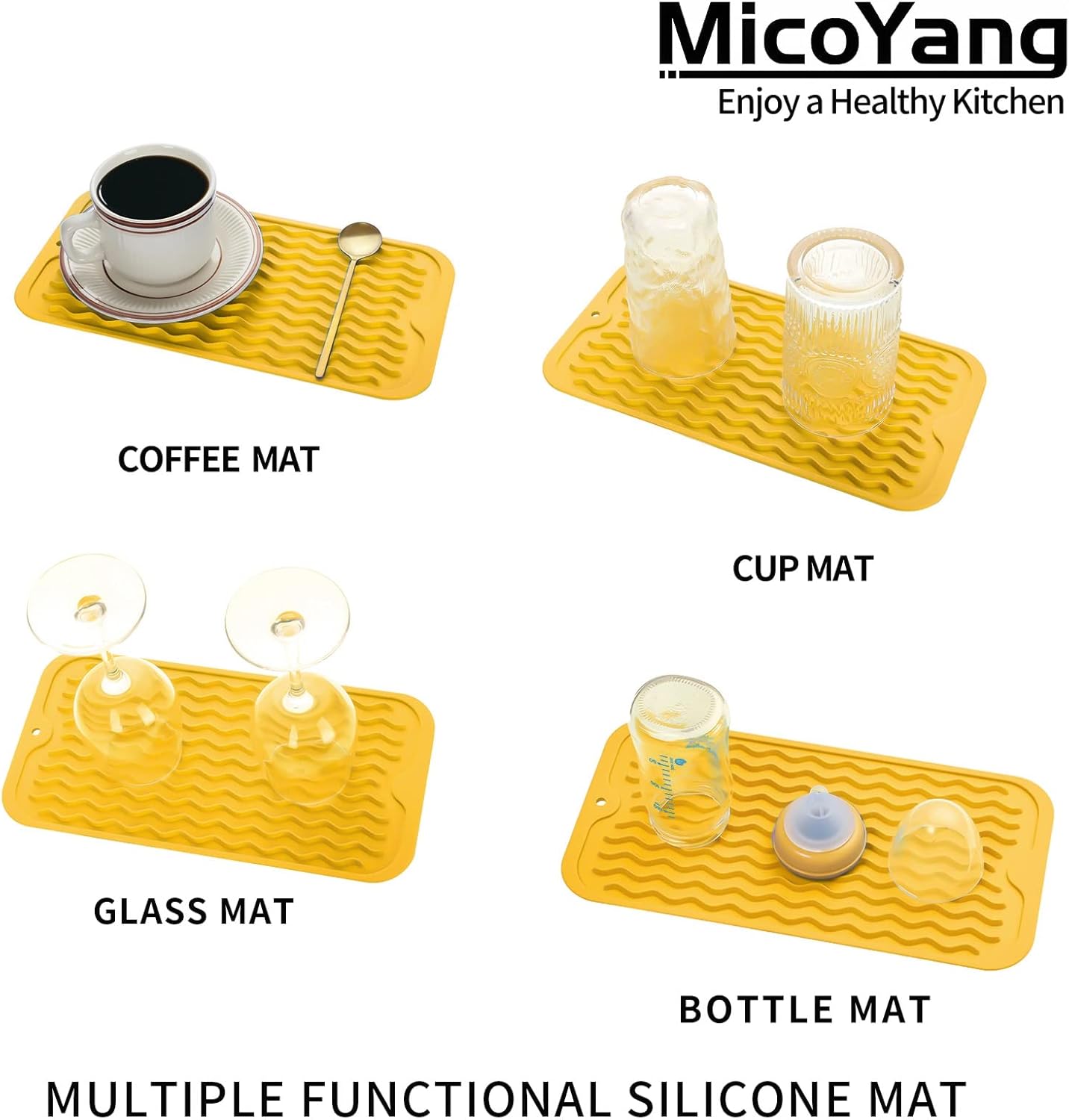 Silicone Dish Drying Mat for Multiple Usage,Easy clean,Eco-friendly,Heat-resistant Silicone Mat for Kitchen Counter or Sink,Refrigerator or Drawer Liner Yellow S 12 inches x 6 inches