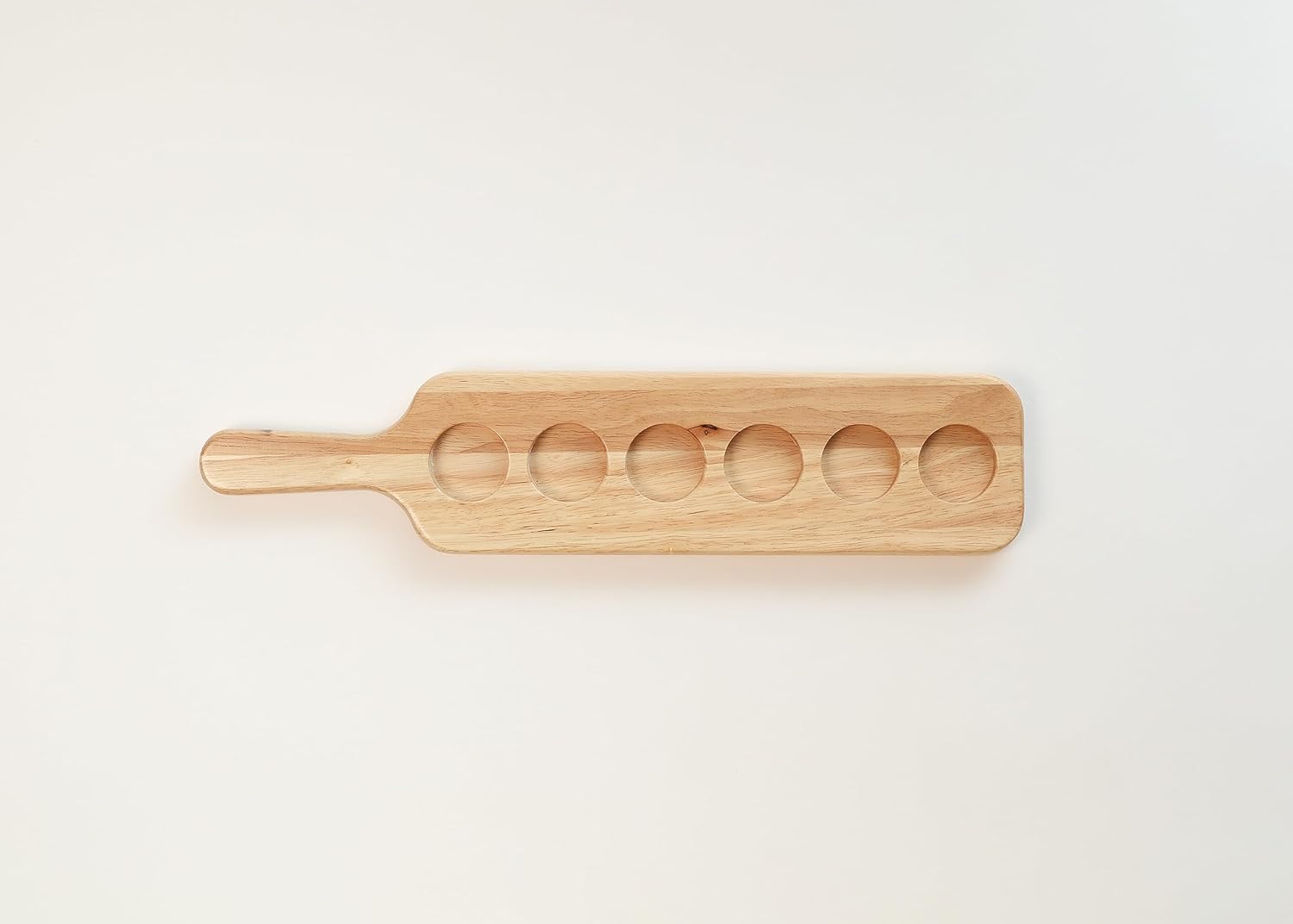 Saludi Colored Shot Glasses, 2oz (Set of 6) Multi-Color Glass with Wood Paddle - Luxury, Durable, Hand-Blown