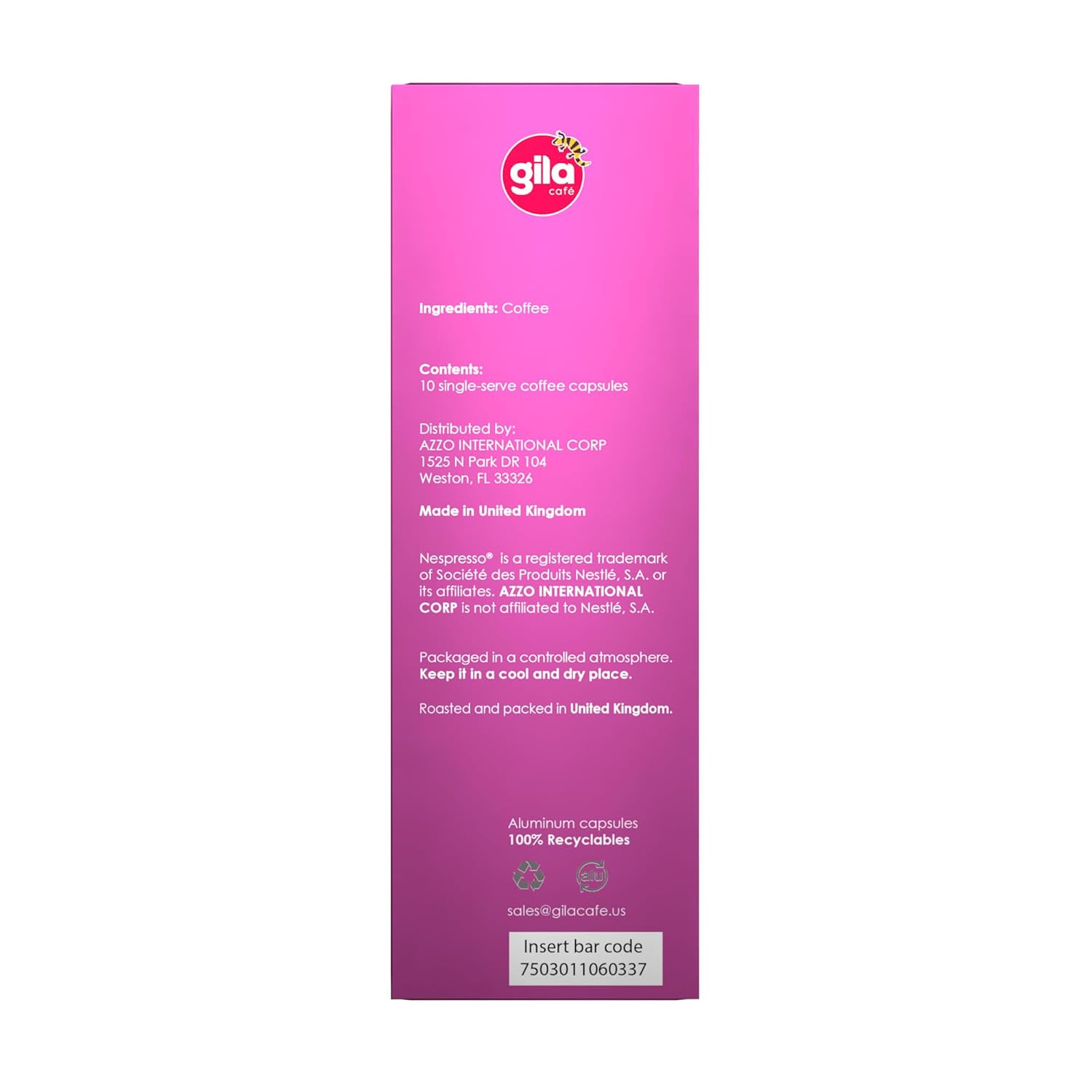 - GILA ESPRESSO CAPSULES ARE COMPATIBLE with Nespresso* Original coffee machine; not compatible with Nespresso Vertuo *Trademark of a third party, not connected to GILA CAFÉ, ENCORE INC, SAPI DE CV OR AZZO INTERNATIONAL CORP