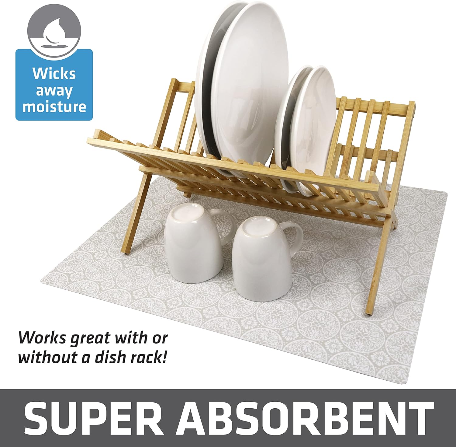 - (XL SIZE) KEEPS COUNTERTOPS CLEAN AND DRY (PREMIUM LOW-PROFILE DESIGN): The low-profile design (0.13” thick), adds stability when drying stemware or other delicate items and allows moisture to evaporate quickly. The XL size is great for air-drying dishes, glasses, silverware, pots, pans, and fruits and vegetables.