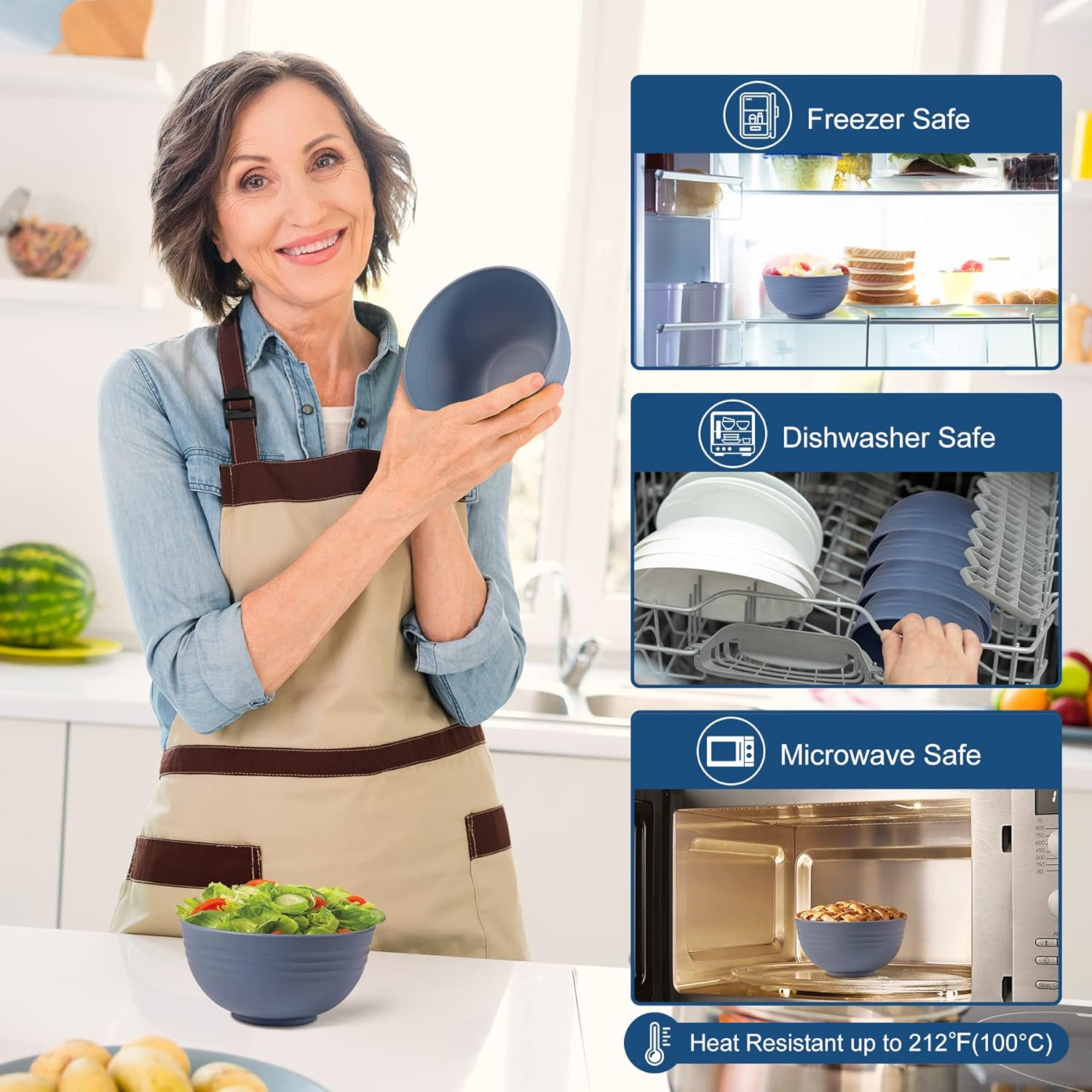 HOTEC BPA Free Unbreakable Wheat Straw Cereal Bowls - Microwave & Dishwasher Safe Soup and Salad Bowls, Set of 8, 26oz, Classic Blue