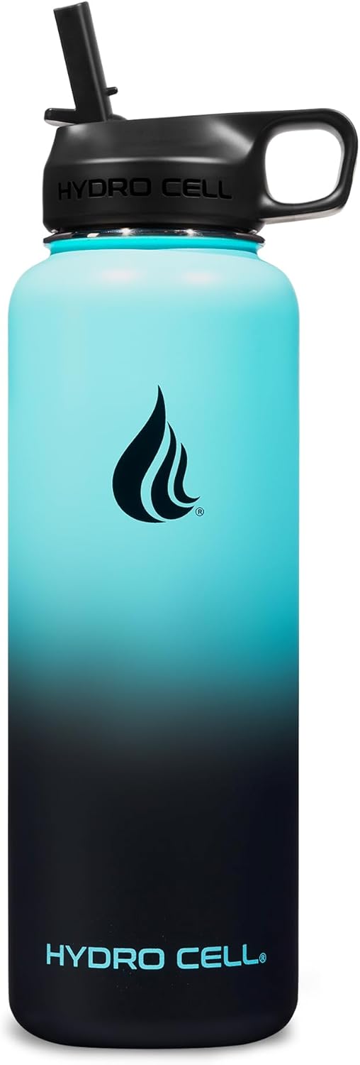 HYDRO CELL Stainless Steel Insulated Water Bottle with Straw - For Cold & Hot Drinks - Metal Vacuum Flask with Screw Cap and Modern Leakproof Sport Thermos for Adults (Teal/Black 40oz)