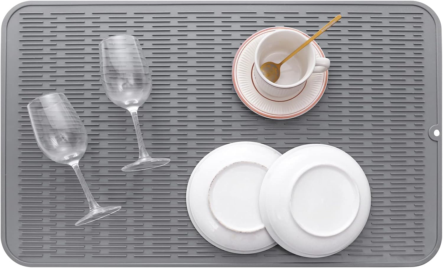 Silicone Dish Drying Mat for Multiple Usage,Easy clean,Eco-friendly,Heat-resistant Silicone Mat for Kitchen Counter or Sink,Refrigerator or Drawer Liner Grey 3XL 28 inches x 18 inches