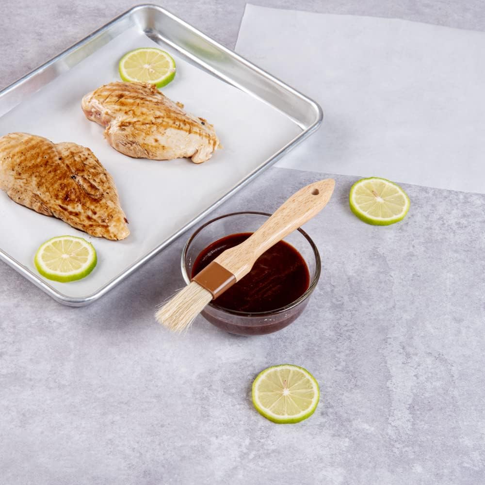 - HANDY TO USE: Made from rubber wood, the lacquered handle of this marinating brush has a non-slip, splinterless surface to let you coat pastries effortlessly. Withstands heat without burning fingers!