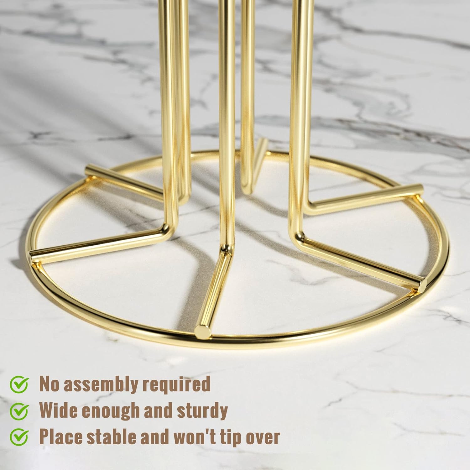 HULISEN Mug Holder for Large Cups, Mug Tree for Counter with 6 Hooks, Metal Coffee Mug Stand for Easy Pick, Place and Display, Coffee Bar Accessories and Decor, Free Standing Mug Rack, Gold