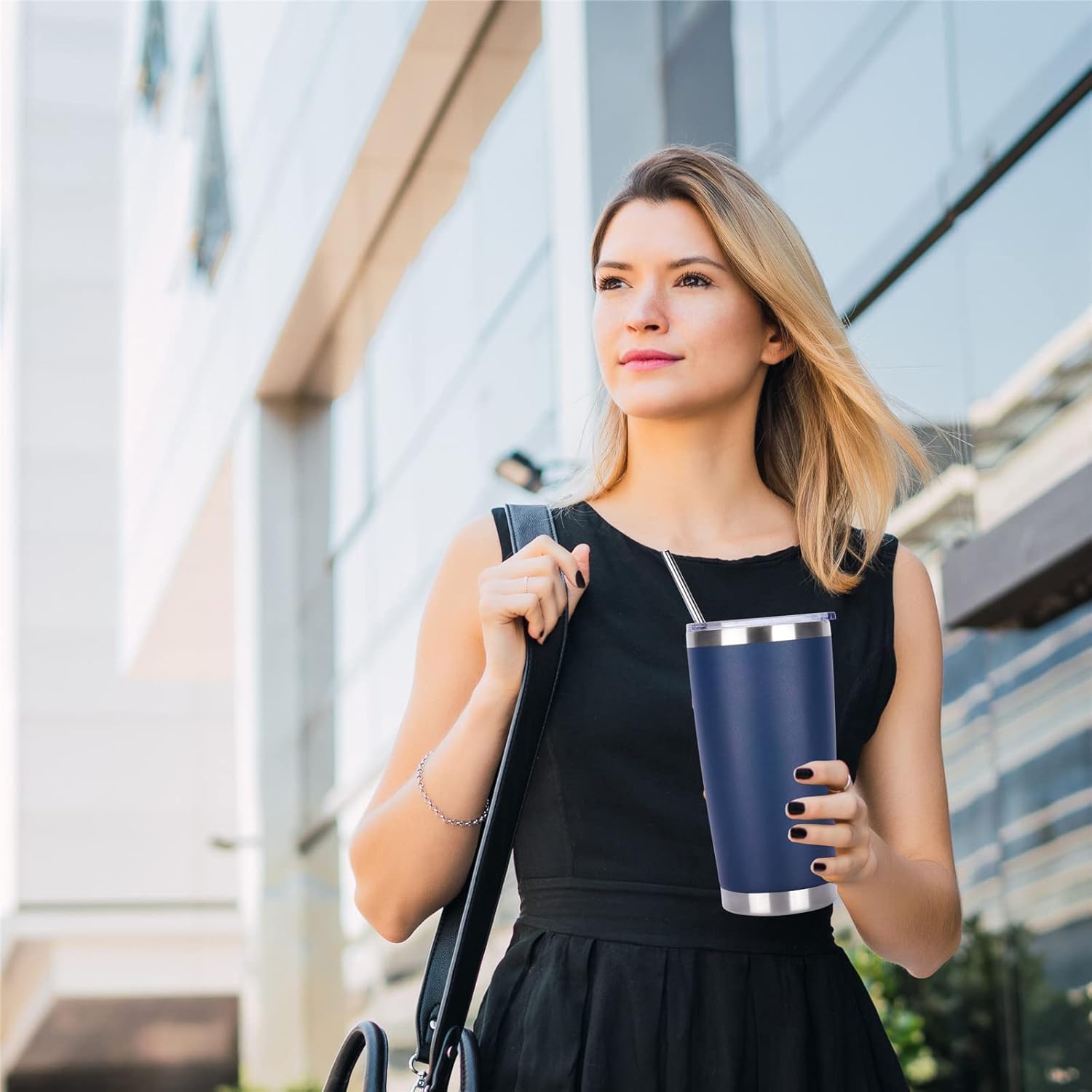 Pandance 20oz Stainless Steel Insulated Tumblers with Lid and Straw Bulk, Double Wall Vacuum Water Cups for Hot & Iced Coffee Drinks Travel Mug (Navy Blue, 8 pack)