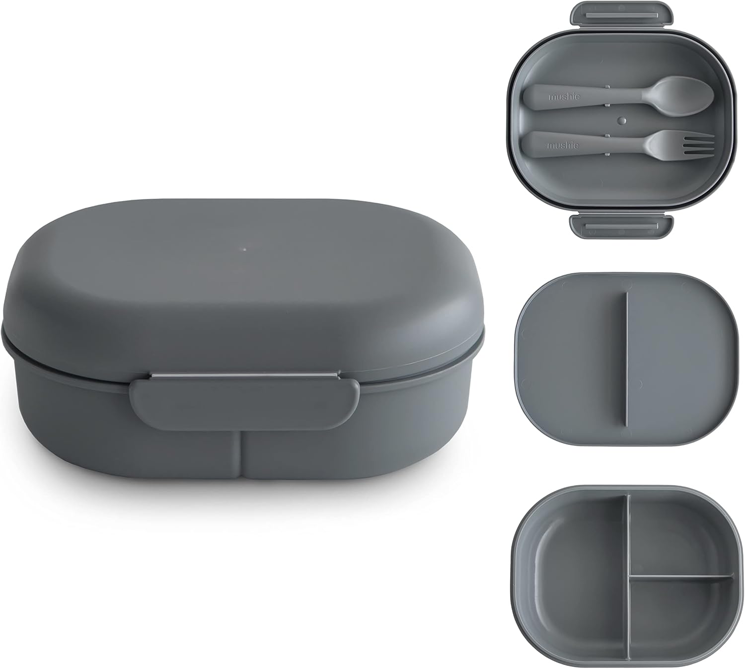 mushie Kids Bento Lunch Box | 3-Compartment & Removable Divider + Fork & Spoon Utensils | Great For Meals, School, Snacks On-the-Go | Dishwasher Safe (Smoke)