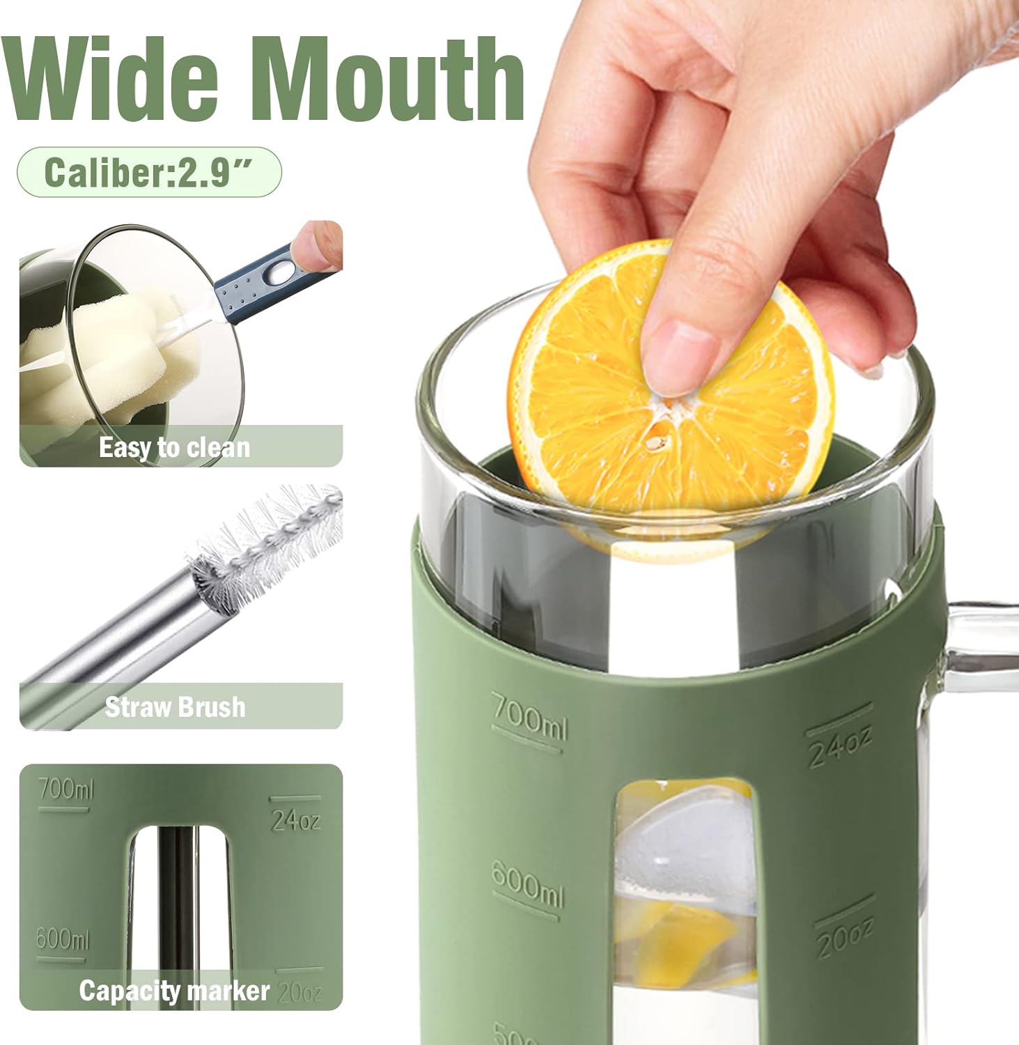 - Material Borosilicate Glass : Capacity 24 Fluid Ounces